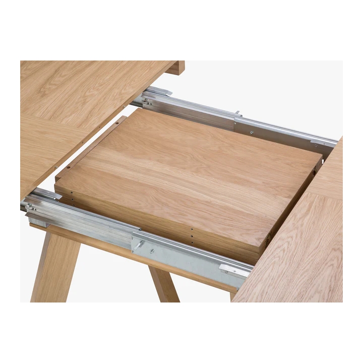 The total weight of the table is 85 kg, which testifies to the robustness of the materials used. The table top extension inserts can be conveniently stored underneath the table top surface for easy use when needed. The carefully considered construction means that the Dustin model will last a long time in a domestic space.