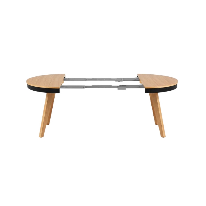 The Ludia round table from Micadoni is an option for those who appreciate solid workmanship and the ability to adapt the furniture to different occasions. Its table top, with a diameter of 100 cm, can be extended to 200 cm using two inserts, each 50 cm wide. The height of the table is 74.5 cm and its maximum load is 50 kg.