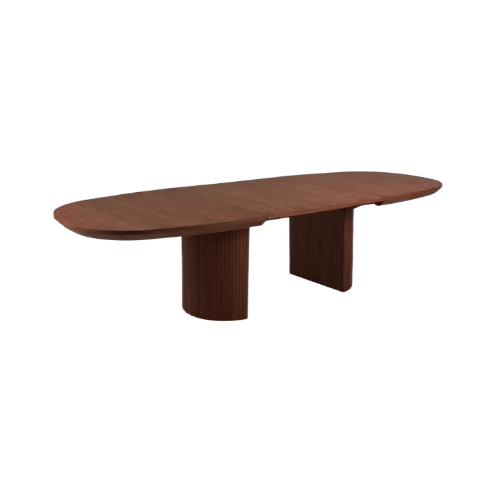 The Nido extending table from Micadoni is the perfect choice for both everyday meals and larger gatherings around a communal table. Its 200 cm wide oval top can be extended to 300 cm thanks to two inserts, each 50 cm wide, to comfortably accommodate up to 12 people. Its semi-circular shape makes it easy to blend into a variety of interior settings, and its careful finish underlines the refined character of the furniture.