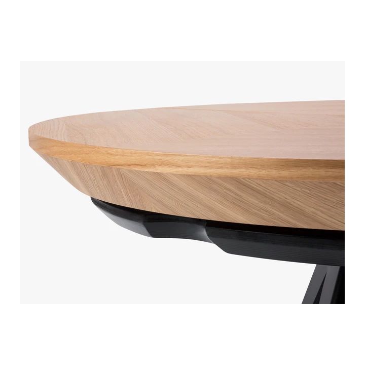 The Toni model is designed for 4 to 8 people, making it suitable for both everyday use and larger table gatherings. The top is made of oak veneer with a unique grain pattern and the edges have been carefully finished. The two-stage unfolding system works smoothly and additional inserts are conveniently stored under the top.
