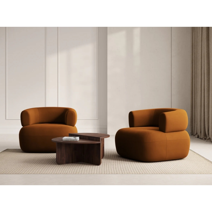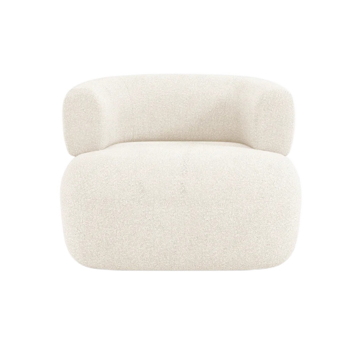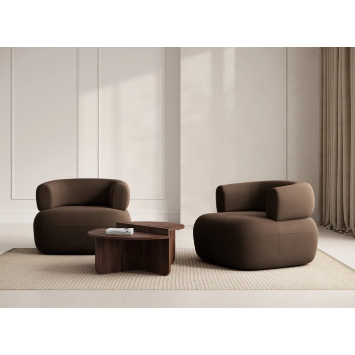 The Jenny armchair by Micadoni features a distinctive rounded silhouette that brings a sense of calm and softness into the interior. Its dimensions are 90 cm in width, 73 cm in height, and 88 cm in depth. The curved sides and enveloping backrest give the chair a cosy, cocoon-like appearance. It is an excellent choice for those seeking a comfortable place to relax without overwhelming the space.