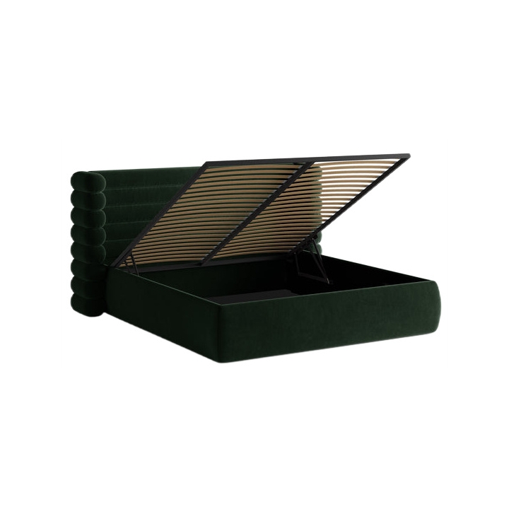 Comfort is further enhanced by the built-in storage compartment located beneath the slatted frame, which spans the entire area under the mattress. The lift-up mechanism allows easy access to the interior, providing ample space for duvets, pillows, and other household items. This is an excellent solution for gaining additional storage space.