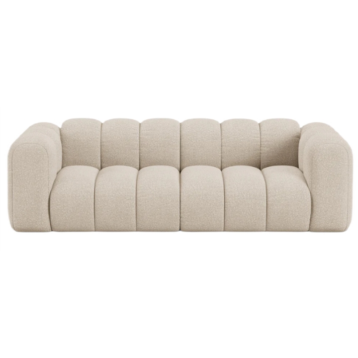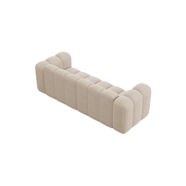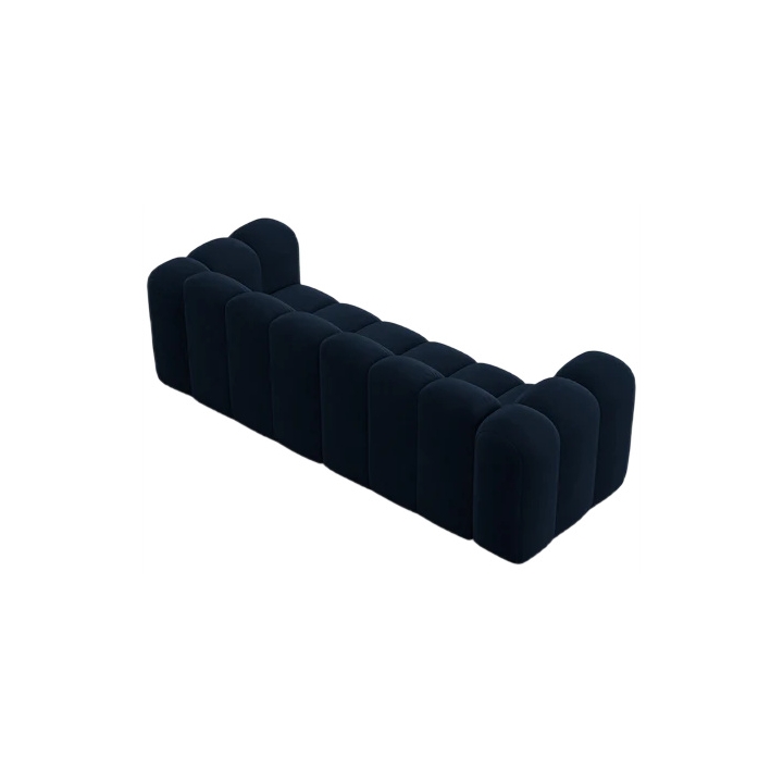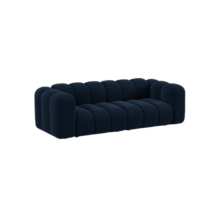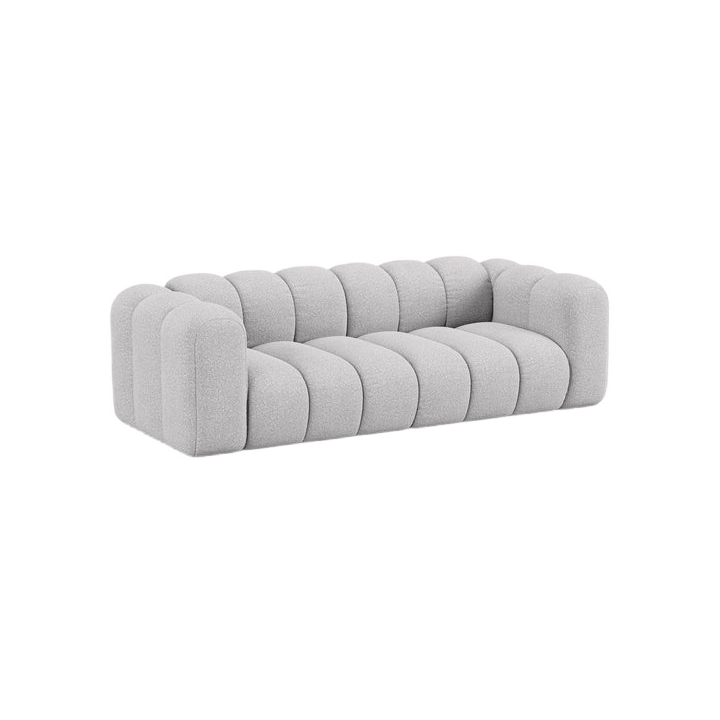 The Lupine 3-seater sofa by Micadoni is a generously sized piece measuring 230 cm in width, 95 cm in depth, and 70 cm in height. The design is defined by rounded edges, which give the form a sense of visual lightness and emphasize its modern character. This collection focuses on full, curved shapes that create an inviting space for shared relaxation on a wide seating surface.