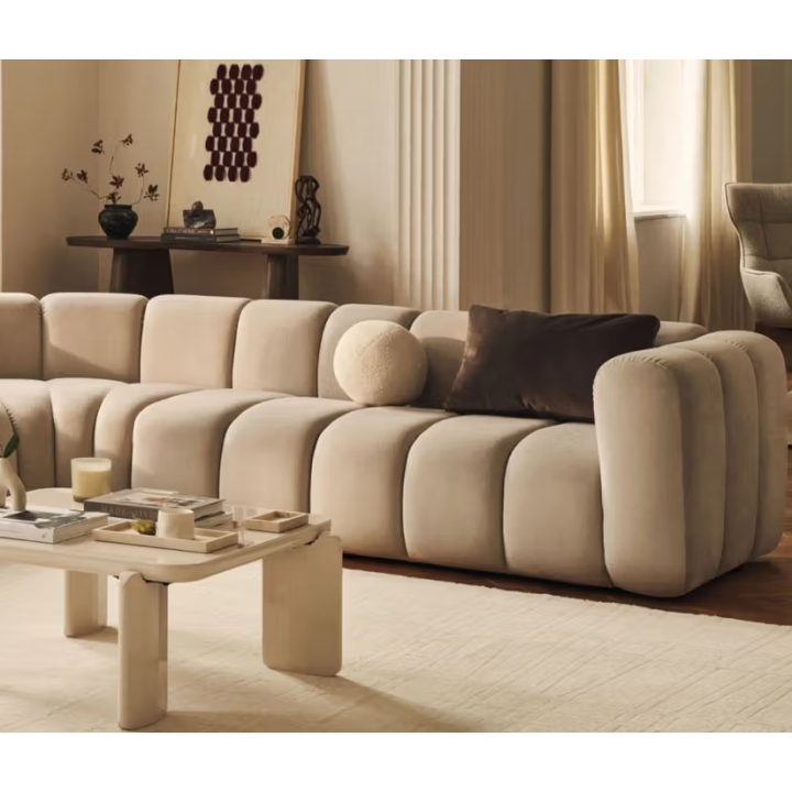 The final look of the sofa can be tailored to the interior using the configurator. A broad selection of colors and fabric textures allows for choosing upholstery in various weaves, making it easy to match the sofa with wall colors, flooring, and the overall style of the living room.