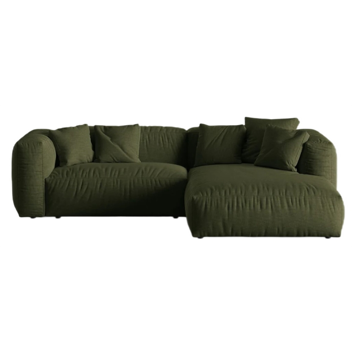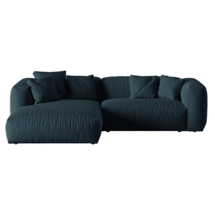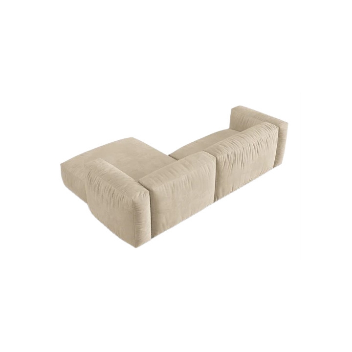 The corner sofa is based on a modular construction, allowing the elements to be freely configured according to the interior layout. The interior of the seats is filled with corrugated springs and two layers of foam: polyurethane with a density of 30 kg/m³ and high-flexible with a density of 35 kg/m³, which translates into durable support and long-lasting softness. This is complemented by a 600 g/m² non-woven fabric, which gives the seat a fluffy and pleasant texture.