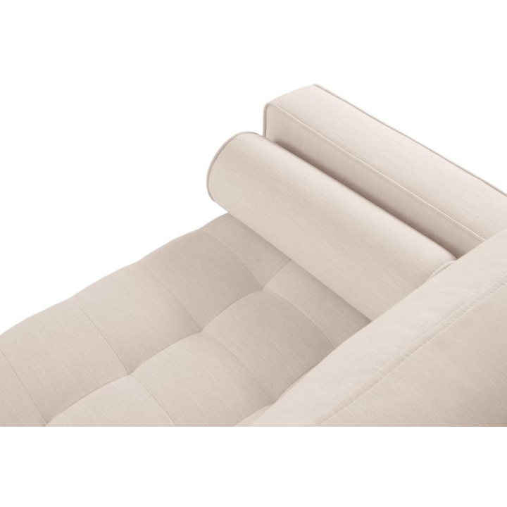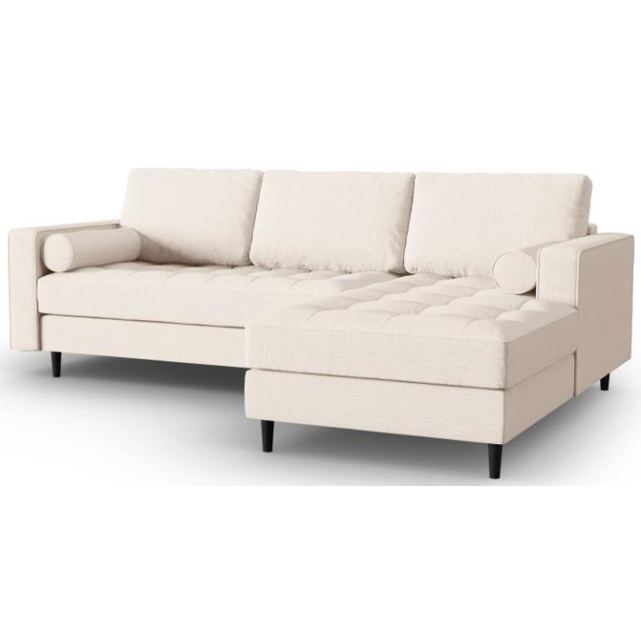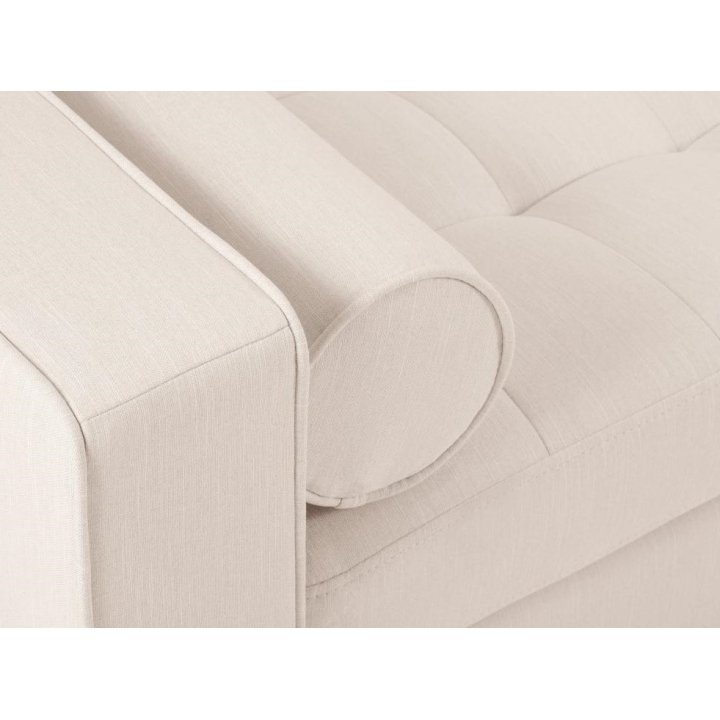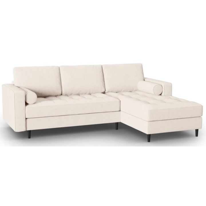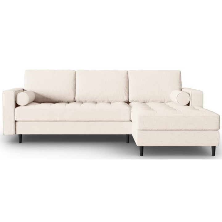 The Santo collection corner sofa by manufacturer Milo Casa is available in 3 colours: Beige, Light Beige and Blue, so it will suit any type of interior. The filling of the seat makes the use of the furniture very comfortable, as it is made from a combination of polyurethane foam with high elasticity, springs and oats, and the filling of the backrest from silicone. The furniture is upholstered with a structural fabric that feels like linen and is extremely resistant to abrasion. The corner sofa measures: 236 cm wide, 90 cm high, 170 cm deep is set on high legs made of beech wood in black. This small accent gives the whole structure a touch of style. The lounger can be manufactured on the left or on the right, so you can better adapt the furniture to your flat