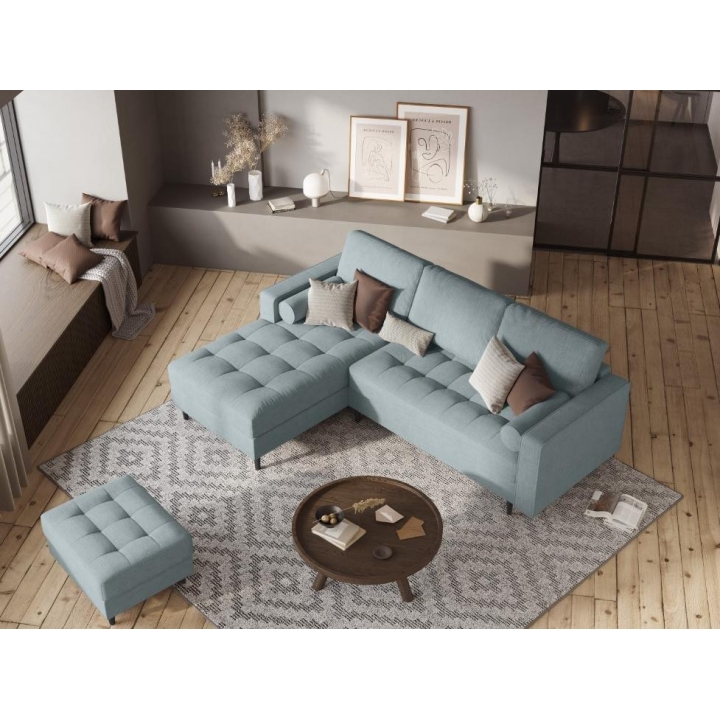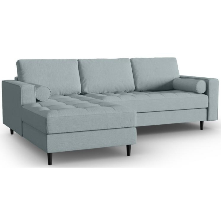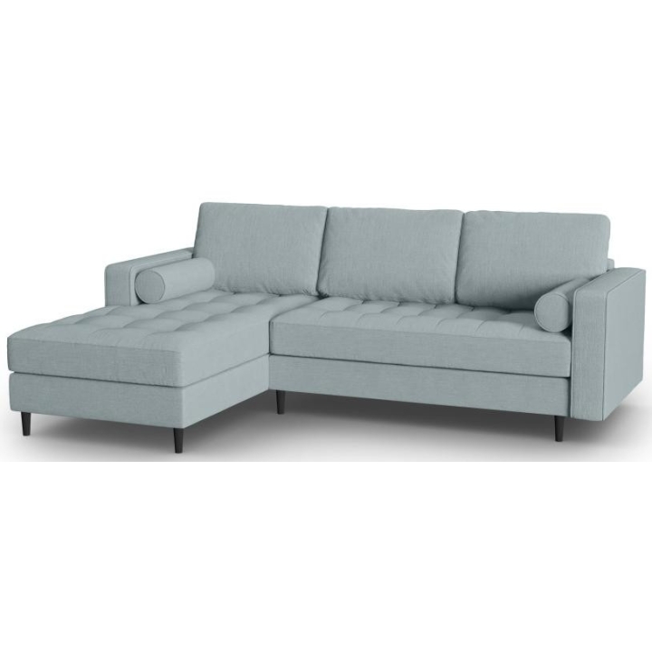The Santo collection corner sofa by manufacturer Milo Casa is available in 3 colours: Beige, Light Beige and Blue, so it will suit any type of interior. The filling of the seat makes the use of the furniture very comfortable, as it is made from a combination of polyurethane foam with high elasticity, springs and oats, and the filling of the backrest from silicone. The furniture is upholstered with a structural fabric that feels like linen and is extremely resistant to abrasion. The corner sofa measures: 236 cm wide, 90 cm high, 170 cm deep is set on high legs made of beech wood in black. This small accent gives the whole structure a touch of style. The lounger can be manufactured on the left or on the right, so you can better adapt the furniture to your flat