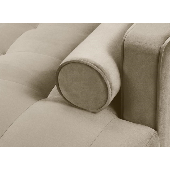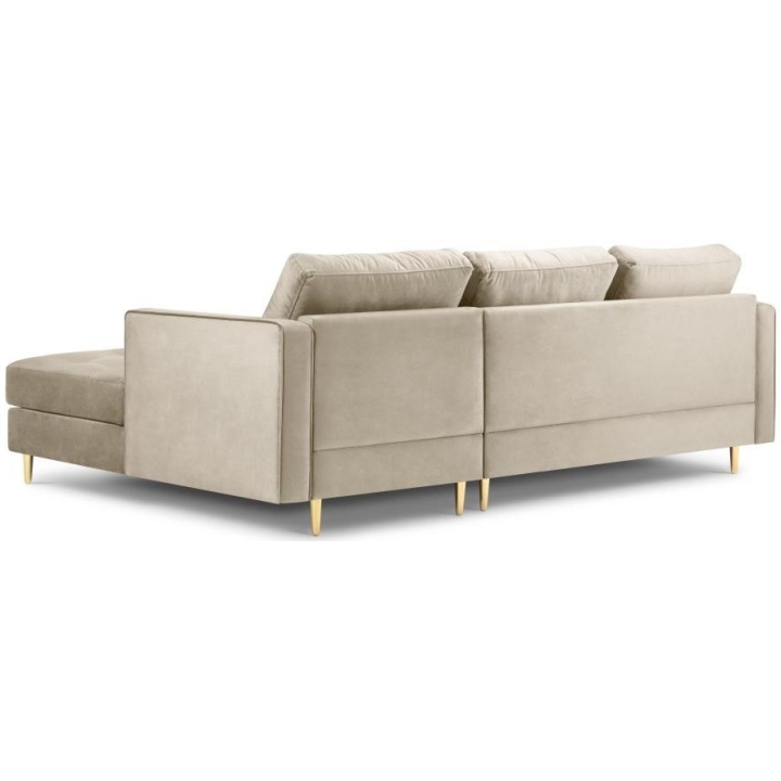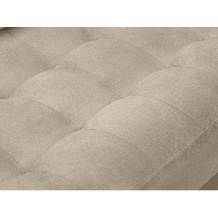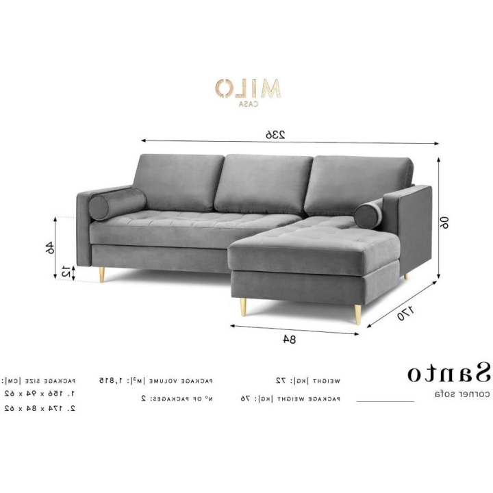 Available in 10 colours,the Santo corner sofa is an unusual option for anyone who likes to have a lot of choice. The furniture comes in Beige, Royal Blue, Grey, Dark Grey, Black, Petrol, Pink, Red, Green and Bottle Green, so it will suit any type of interior. The seat filling makes using the furniture extremely comfortable, as it is made from a combination of highly elastic polyurethane foam, springs and oatmeal, while the backrest filling is made from silicone. The velour fabric with a slightly shiny short pile is soft and pleasant to the touch, and is also extremely resistant to abrasion. The high-quality materials used in the production of the furniture ensure that the user experiences the highest level of comfort when relaxing. The furniture measures: 236 cm in width, 90 cm in height, 170 cm in depth is set on high gold metal legs that add character to the entire structure. The lounger can be produced on the left or right side, so you can better adapt the furniture to your home.