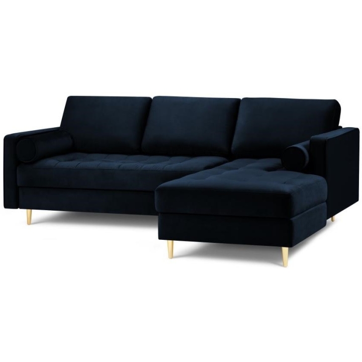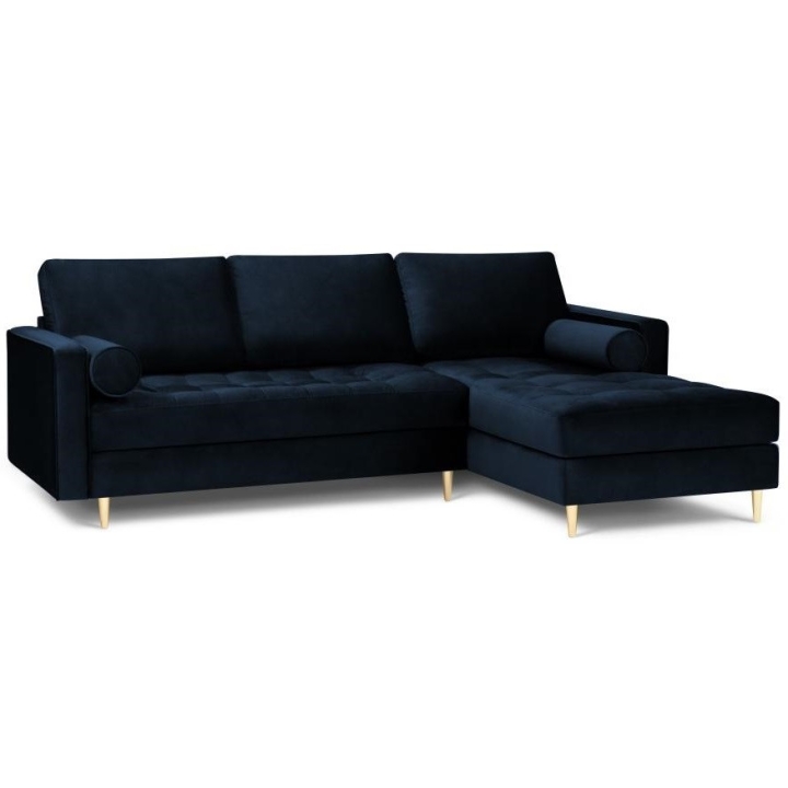 Available in 10 colours,the Santo corner sofa is an unusual option for anyone who likes to have a lot of choice. The furniture comes in Beige, Royal Blue, Grey, Dark Grey, Black, Petrol, Pink, Red, Green and Bottle Green, so it will suit any type of interior. The seat filling makes using the furniture extremely comfortable, as it is made from a combination of highly elastic polyurethane foam, springs and oatmeal, while the backrest filling is made from silicone. The velour fabric with a slightly shiny short pile is soft and pleasant to the touch, and is also extremely resistant to abrasion. The high-quality materials used in the production of the furniture ensure that the user experiences the highest level of comfort when relaxing. The furniture measures: 236 cm in width, 90 cm in height, 170 cm in depth is set on high gold metal legs that add character to the entire structure. The lounger can be produced on the left or right side, so you can better adapt the furniture to your home.
