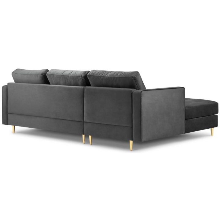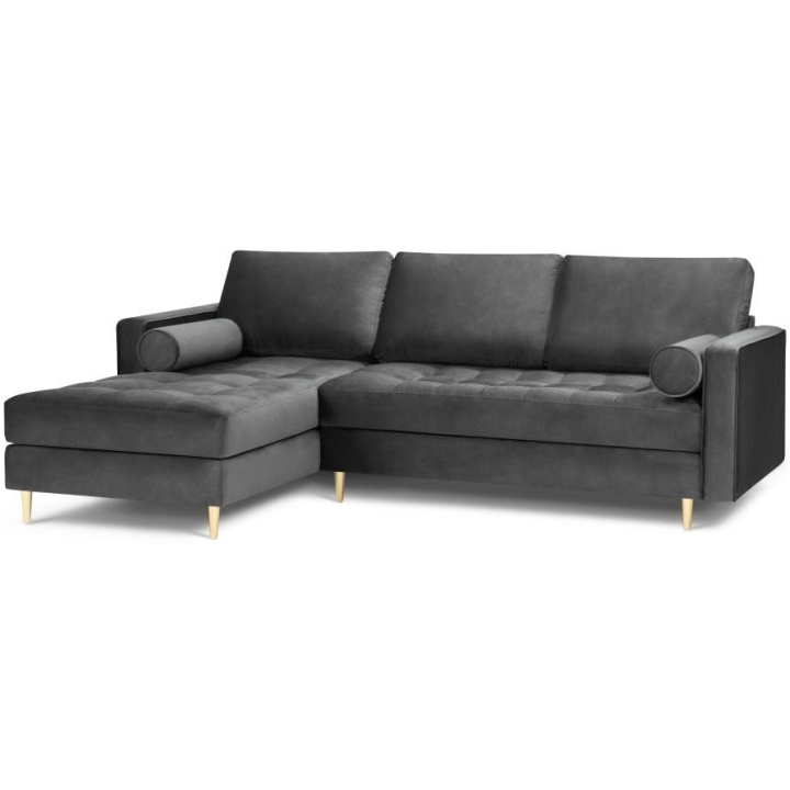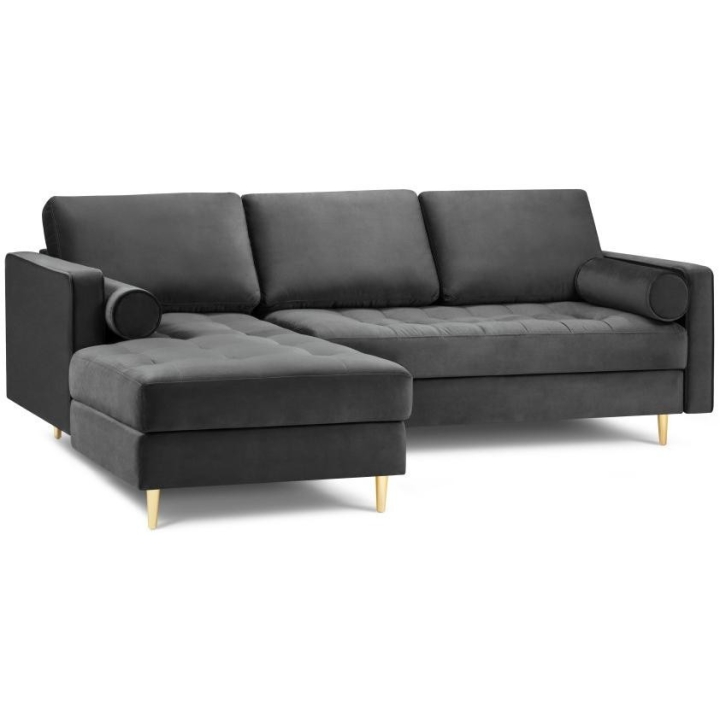 Available in 10 colours,the Santo corner sofa is an unusual option for anyone who likes to have a lot of choice. The furniture comes in Beige, Royal Blue, Grey, Dark Grey, Black, Petrol, Pink, Red, Green and Bottle Green, so it will suit any type of interior. The seat filling makes using the furniture extremely comfortable, as it is made from a combination of highly elastic polyurethane foam, springs and oatmeal, while the backrest filling is made from silicone. The velour fabric with a slightly shiny short pile is soft and pleasant to the touch, and is also extremely resistant to abrasion. The high-quality materials used in the production of the furniture ensure that the user experiences the highest level of comfort when relaxing. The furniture measures: 236 cm in width, 90 cm in height, 170 cm in depth is set on high gold metal legs that add character to the entire structure. The lounger can be produced on the left or right side, so you can better adapt the furniture to your home.