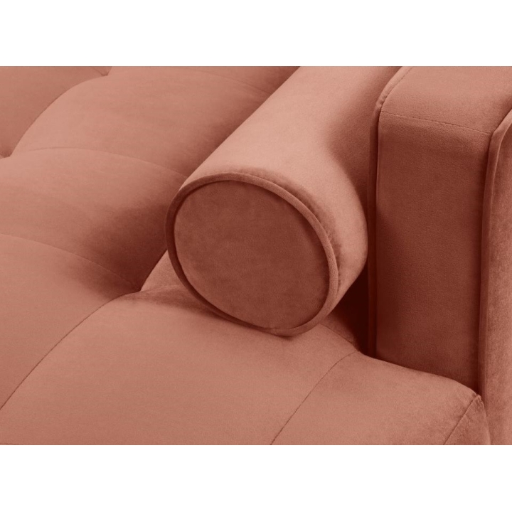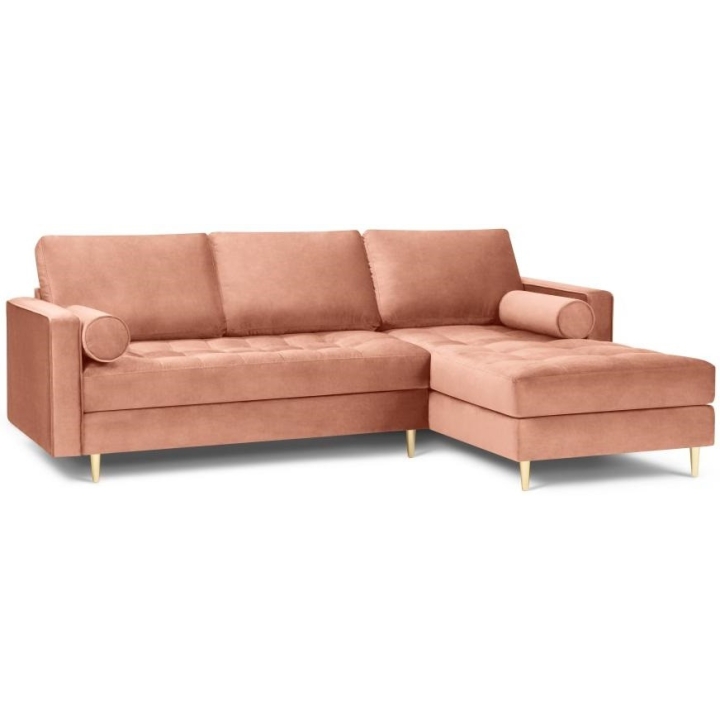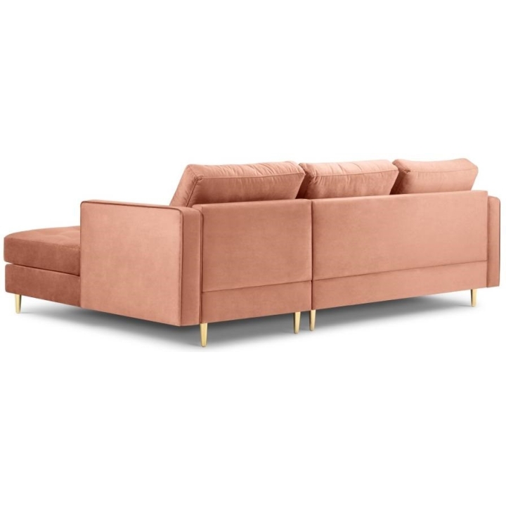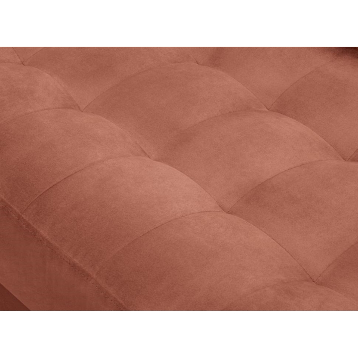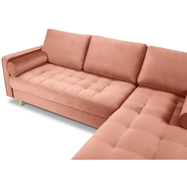 Available in 10 colours,the Santo corner sofa is an unusual option for anyone who likes to have a lot of choice. The furniture comes in Beige, Royal Blue, Grey, Dark Grey, Black, Petrol, Pink, Red, Green and Bottle Green, so it will suit any type of interior. The seat filling makes using the furniture extremely comfortable, as it is made from a combination of highly elastic polyurethane foam, springs and oatmeal, while the backrest filling is made from silicone. The velour fabric with a slightly shiny short pile is soft and pleasant to the touch, and is also extremely resistant to abrasion. The high-quality materials used in the production of the furniture ensure that the user experiences the highest level of comfort when relaxing. The furniture measures: 236 cm in width, 90 cm in height, 170 cm in depth is set on high gold metal legs that add character to the entire structure. The lounger can be produced on the left or right side, so you can better adapt the furniture to your home.