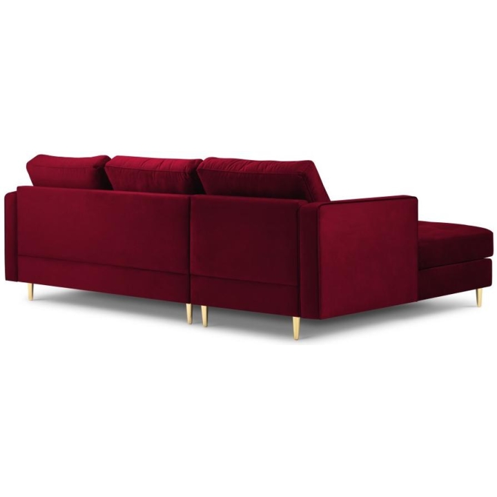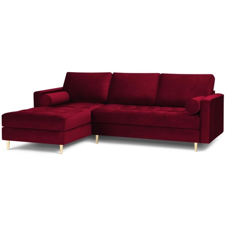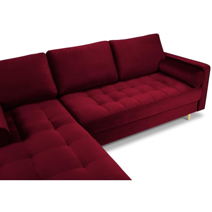 Available in 10 colours,the Santo corner sofa is an unusual option for anyone who likes to have a lot of choice. The furniture comes in Beige, Royal Blue, Grey, Dark Grey, Black, Petrol, Pink, Red, Green and Bottle Green, so it will suit any type of interior. The seat filling makes using the furniture extremely comfortable, as it is made from a combination of highly elastic polyurethane foam, springs and oatmeal, while the backrest filling is made from silicone. The velour fabric with a slightly shiny short pile is soft and pleasant to the touch, and is also extremely resistant to abrasion. The high-quality materials used in the production of the furniture ensure that the user experiences the highest level of comfort when relaxing. The furniture measures: 236 cm in width, 90 cm in height, 170 cm in depth is set on high gold metal legs that add character to the entire structure. The lounger can be produced on the left or right side, so you can better adapt the furniture to your home.