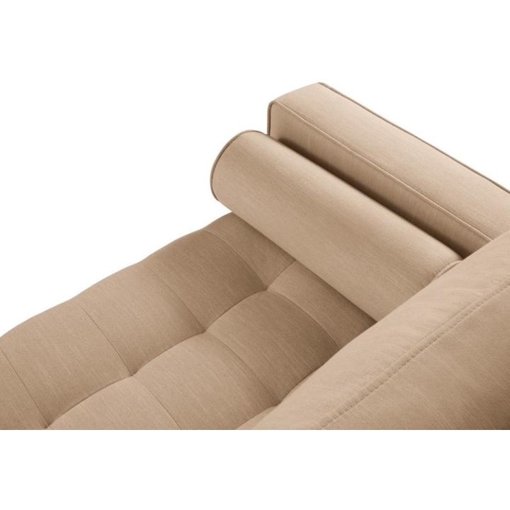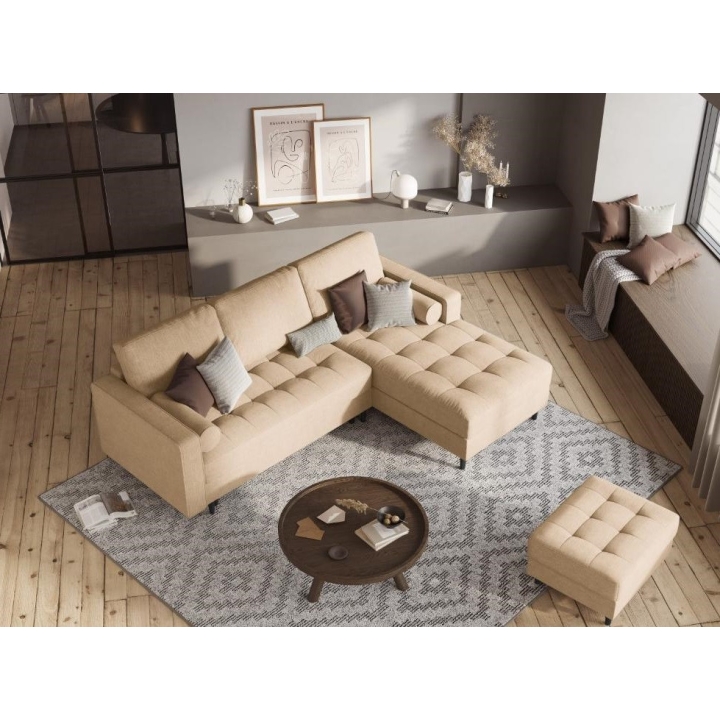 The Santo corner sofa from the manufacturer Milo Casa with DL sleeping function is characterised by the seat filling, which is made from a combination of highly elastic polyurethane foam and silicone, which is also the filling of the backrest. The structured fabric with LiquidBlocked technology is very pleasant to the touch and additionally extremely resistant to abrasion. The high-quality materials used in the production of the furniture ensure that the user experiences the highest level of comfort when relaxing. The furniture measures: 240 cm wide, 96 cm high, 175 cm deep is set on high wooden legs that add character to the entire structure. The furniture is available in 3 colour options: Beige, Light Beige and Blue. The lounger can be manufactured on the left or right side. The size of the sleeping surface is 140 × 210 cm