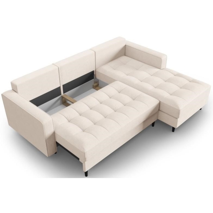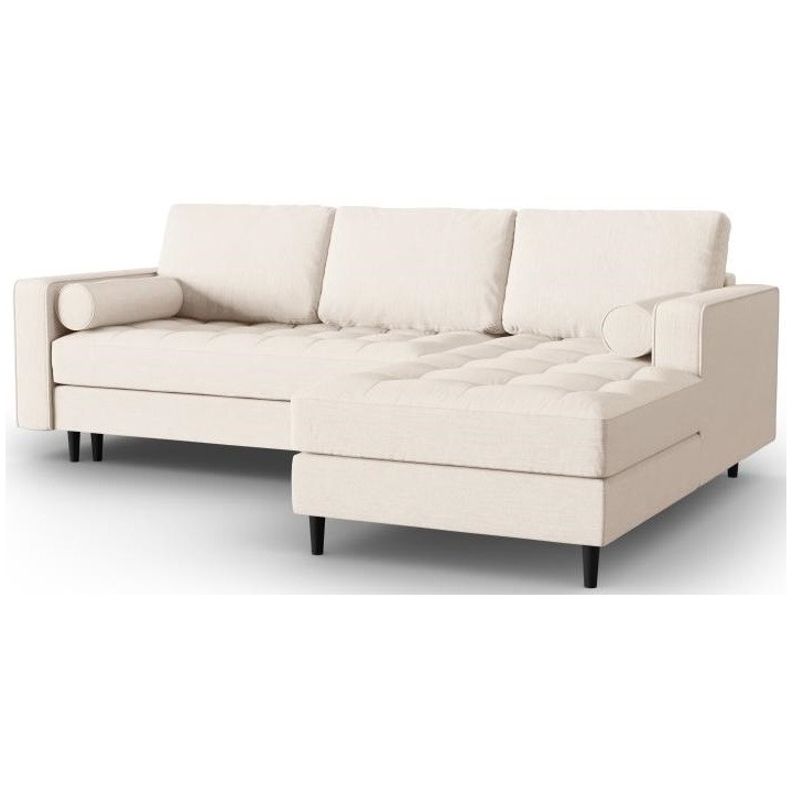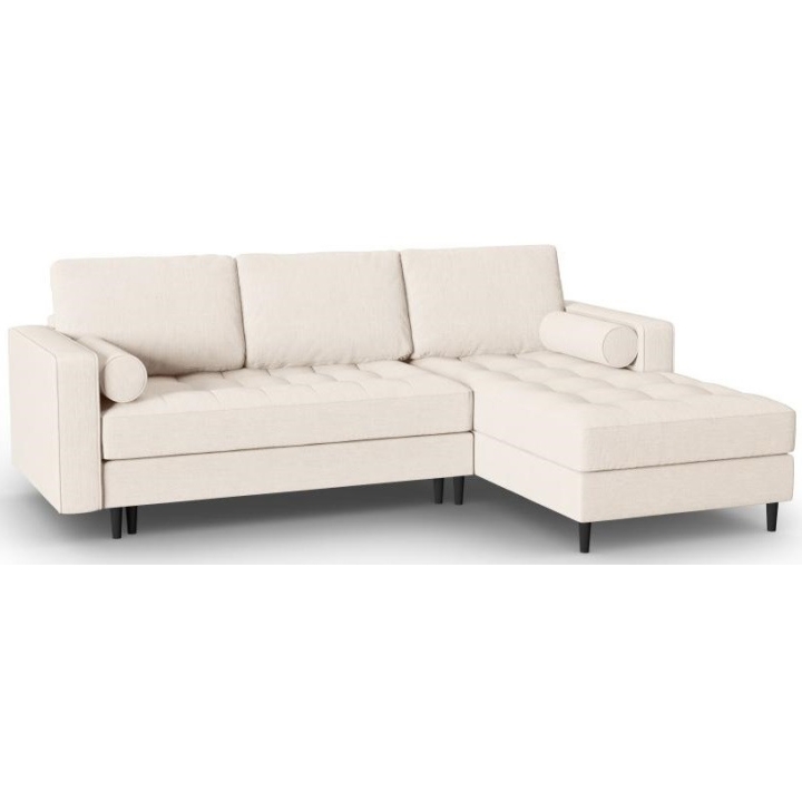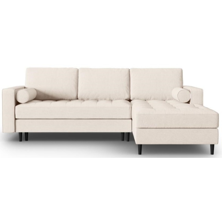 The Santo corner sofa from the manufacturer Milo Casa with DL sleeping function is characterised by the seat filling, which is made from a combination of highly elastic polyurethane foam and silicone, which is also the filling of the backrest. The structured fabric with LiquidBlocked technology is very pleasant to the touch and additionally extremely resistant to abrasion. The high-quality materials used in the production of the furniture ensure that the user experiences the highest level of comfort when relaxing. The furniture measures: 240 cm wide, 96 cm high, 175 cm deep is set on high wooden legs that add character to the entire structure. The furniture is available in 3 colour options: Beige, Light Beige and Blue. The lounger can be manufactured on the left or right side. The size of the sleeping surface is 140 × 210 cm