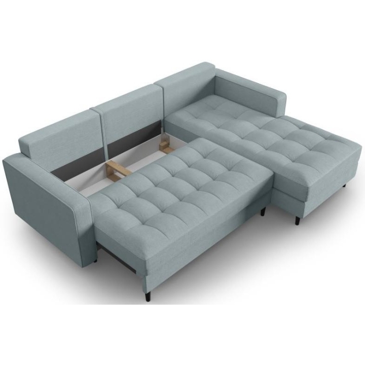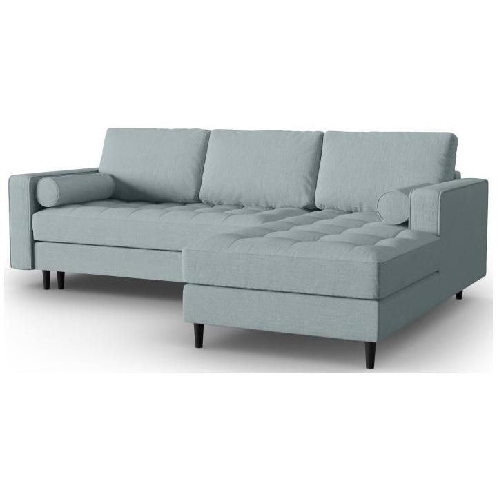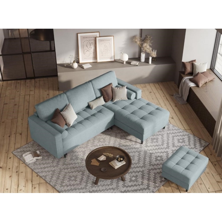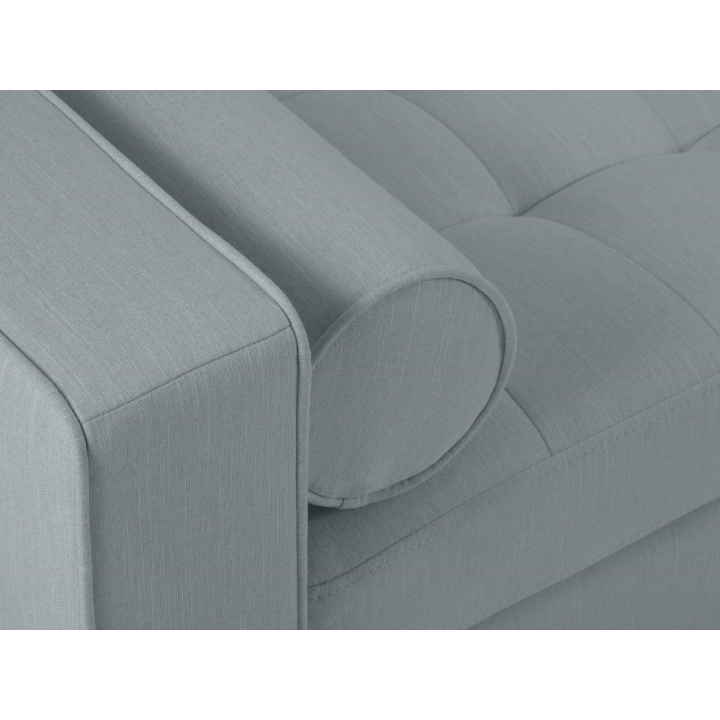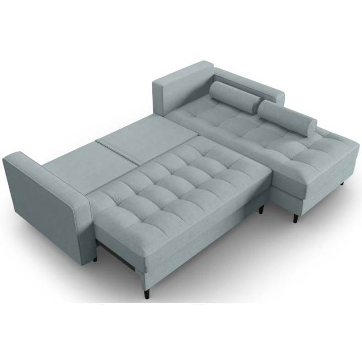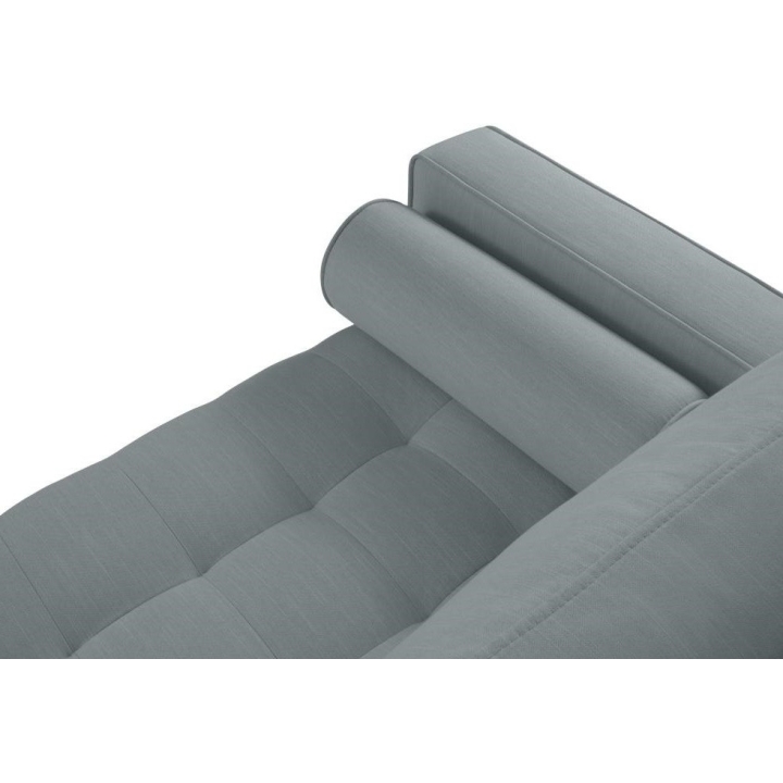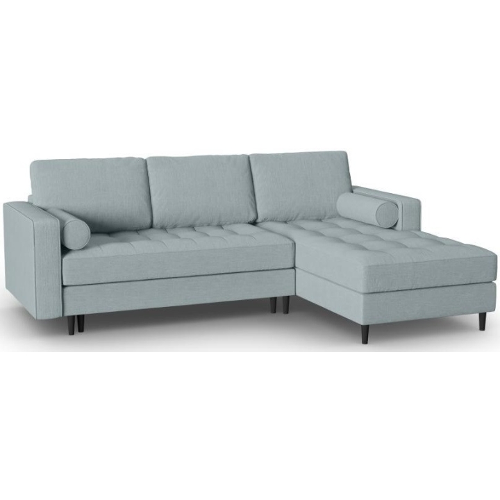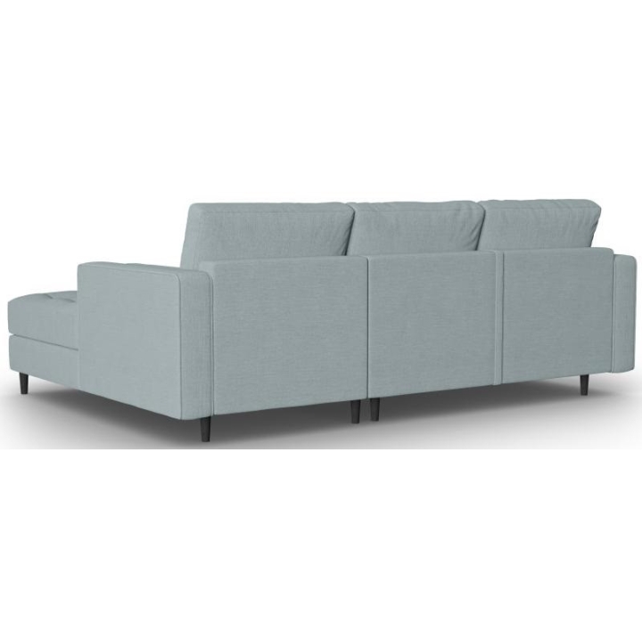 The Santo corner sofa from the manufacturer Milo Casa with DL sleeping function is characterised by the seat filling, which is made from a combination of highly elastic polyurethane foam and silicone, which is also the filling of the backrest. The structured fabric with LiquidBlocked technology is very pleasant to the touch and additionally extremely resistant to abrasion. The high-quality materials used in the production of the furniture ensure that the user experiences the highest level of comfort when relaxing. The furniture measures: 240 cm wide, 96 cm high, 175 cm deep is set on high wooden legs that add character to the entire structure. The furniture is available in 3 colour options: Beige, Light Beige and Blue. The lounger can be manufactured on the left or right side. The size of the sleeping surface is 140 × 210 cm