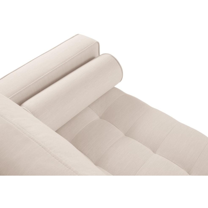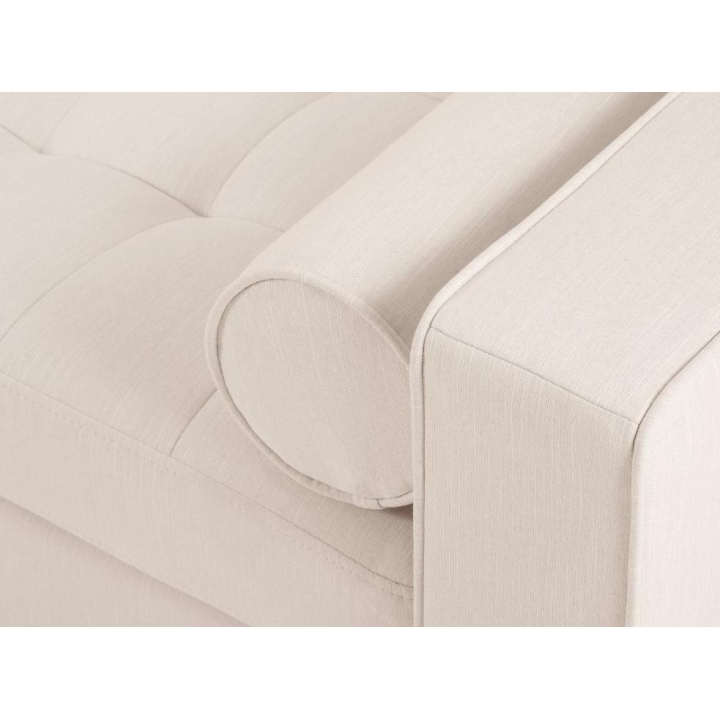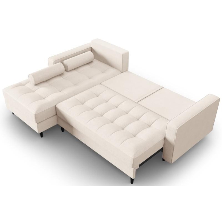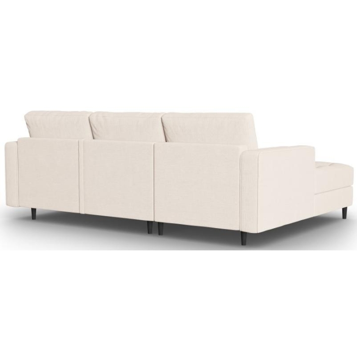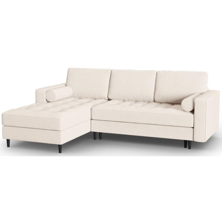 The Santo corner sofa from the manufacturer Milo Casa with DL sleeping function is characterised by the seat filling, which is made from a combination of highly elastic polyurethane foam and silicone, which is also the filling of the backrest. The structured fabric with LiquidBlocked technology is very pleasant to the touch and additionally extremely resistant to abrasion. The high-quality materials used in the production of the furniture ensure that the user experiences the highest level of comfort when relaxing. The furniture measures: 240 cm wide, 96 cm high, 175 cm deep is set on high wooden legs that add character to the entire structure. The furniture is available in 3 colour options: Beige, Light Beige and Blue. The lounger can be manufactured on the left or right side. The size of the sleeping surface is 140 × 210 cm