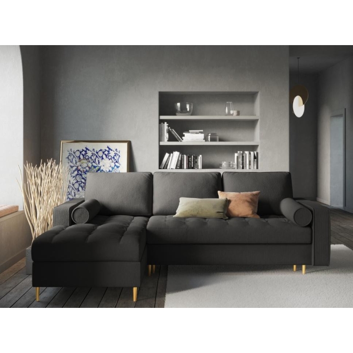 Corner sofa with sleeping function Santo velour fabric Milo CasaWid: 109.00, Dep: 230.00, Hgt: 230.00.