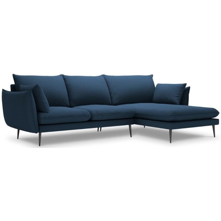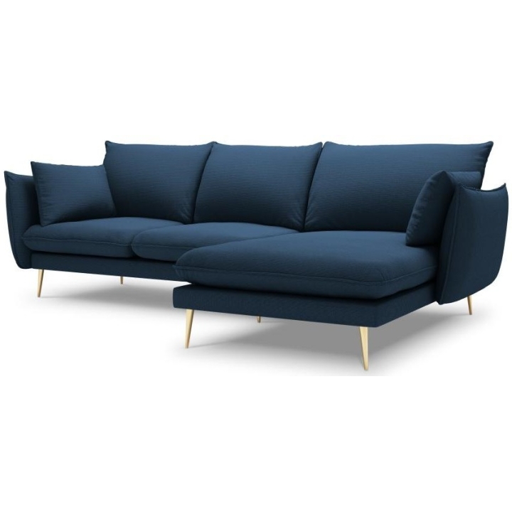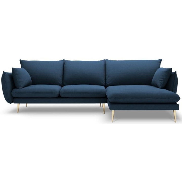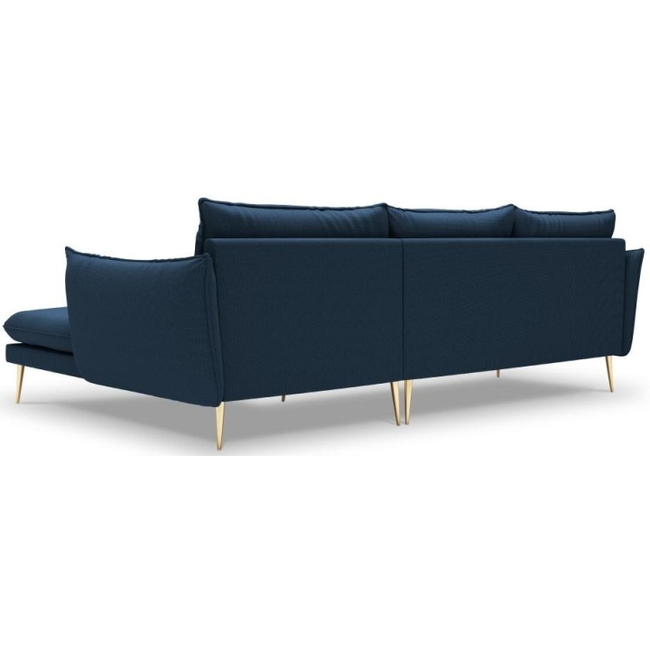 The 5-person corner sofa. Elio by manufacturer Milo Casa is a piece of furniture with dimensions: 251 cm wide, 97 cm high, 170 cm deep, which is characterised by its extreme comfort. The corner sofa is available in 9 colours: Beige, Blue, Grey, Light Grey, Dark Grey, Mint, Gold and Green, so it will suit any type of interior. The seat filling is made of springs, as well as a combination of high elasticity polyurethane foam and oatmeal just like the back filling. The furniture was upholstered with premium structural fabric, which ensures the highest comfort of relaxation and is also extremely resistant to abrasion. The high-quality materials used in the production of the furniture make the corner sofa characterised by high strength and durability. The furniture is set on high, metal legs, and their colour depends on the customer's taste (choice of gold or black). The lounger can be manufactured on the left or on the right, so you can better adapt the furniture to your flat.