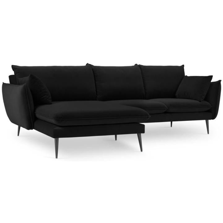 The 5-seater Elio corner sofa by Milo Casa is a piece of furniture with dimensions: 251 cm wide, 97 cm high, 170 cm deep, which is characterised by its extreme comfort. The corner sofa is available in 9 colours: Beige, Blue Grey, Dark Blue, Royal Blue, Light Grey, Black, Bottle Green, Petrol and Red, so it will suit any type of interior. The seat filling is made from a combination of highly elastic polyurethane foam and oatmeal just like the back filling. The furniture was upholstered with velvet fabric, which ensures the highest comfort of relaxation and is also extremely resistant to abrasion. The high-quality materials used in the production of the furniture make the corner sofa characterised by high strength and durability. The furniture is set on high, metal legs, and their colour depends on the customer's taste (choice of gold or black). The lounger can be manufactured on the left or on the right, so you can better adapt the furniture to your flat