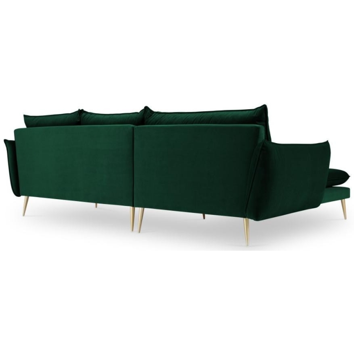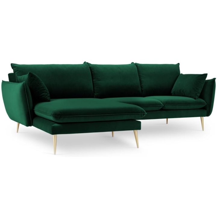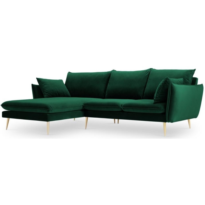 The 5-seater Elio corner sofa by Milo Casa is a piece of furniture with dimensions: 251 cm wide, 97 cm high, 170 cm deep, which is characterised by its extreme comfort. The corner sofa is available in 9 colours: Beige, Blue Grey, Dark Blue, Royal Blue, Light Grey, Black, Bottle Green, Petrol and Red, so it will suit any type of interior. The seat filling is made from a combination of highly elastic polyurethane foam and oatmeal just like the back filling. The furniture was upholstered with velvet fabric, which ensures the highest comfort of relaxation and is also extremely resistant to abrasion. The high-quality materials used in the production of the furniture make the corner sofa characterised by high strength and durability. The furniture is set on high, metal legs, and their colour depends on the customer's taste (choice of gold or black). The lounger can be manufactured on the left or on the right, so you can better adapt the furniture to your flat