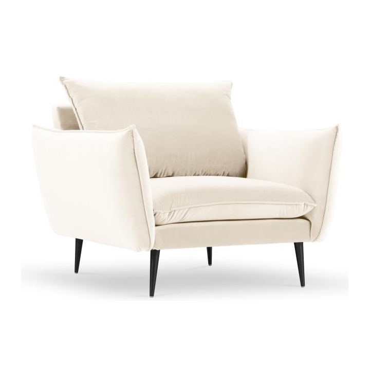 The armchair from the Elio collection by manufacturer Milo Casa is a practical choice for a stylish living room. The seat filling is made of a combination of highly elastic polyurethane foam and oatmeal, while the backrest is made of polyurethane foam frit and oatmeal. The armchair is upholstered in velvet fabric and is available in the colours: light beige, light blue, dark blue, royal blue, light grey, dark grey, black and bottle green.The high-quality materials that have been used in its manufacture ensure that the user receives the ultimate in relaxation. The furniture measures : 94 cm deep, 97 cm high and 97 cm wide is set on high metal legs in a choice of two colours - black or gold. The high legs are a very practical solution when having a cleaning robot in the house. The smooth finished seat and soft armrests make the chair very comfortable.