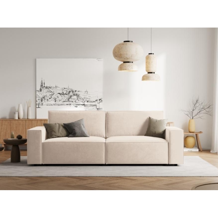 The small 3-seater sofa Carlo by the manufacturer Milo Casa is a piece of furniture with dimensions: 206 cm wide, 90 cm high, 102 cm deep, which is characterised by its extreme comfort. This fashionable sofa is available in 7 colours: Light Beige, Royal Blue, Grey, Light Grey, Yellow, Black and Bottle Green, so it will suit any type of interior. The seat filling is made from a combination of corrugated spring and high elasticity polyurethane foam, and the backrest is filled with silicone. A distinctive feature of the sofa is its small size.and great comfort. The sofa is upholstered with velvet softly shining fabric, which ensures the highest comfort of rest and is pleasant to the touch. The high quality materials used in the production of the furniture make the Carlo three-seater sofa characterised by high strength and durability. The furniture is set on low, plastic legs.