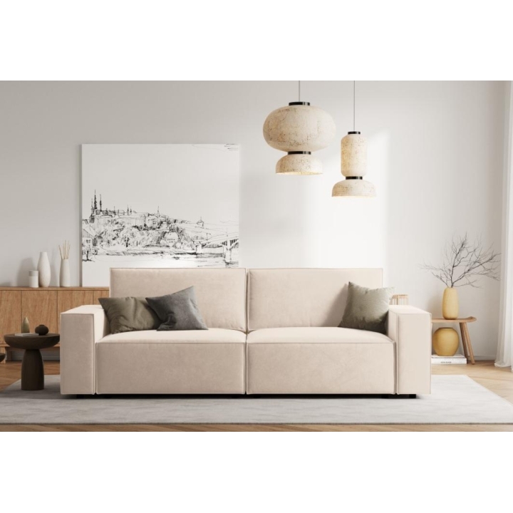The elegant Carlo 4-seater sofa by the manufacturer Milo Casa is a piece of furniture that measures: 246 cm wide, 90 cm high, 102 cm deep, which is characterised by its extreme comfort. This fashionable sofa is available in 7 colours: Light Beige, Royal Blue, Grey, Light Grey, Yellow, Black and Bottle Green, so it will suit any type of interior. The seat filling is made from a combination of corrugated spring and high elasticity polyurethane foam, while the backrest is filled with silicone. A distinctive feature of the sofa is its standard dimensions, which contribute to the high comfort of use. The sofa has been upholstered with velvet softly shining fabric, which is pleasant to the touch. The high-quality materials used in the production of the furniture make the Carlo four-seater sofa characterised by high strength and durability. The furniture is set on low, plastic legs.