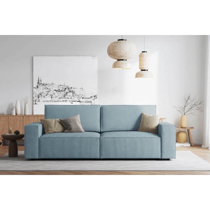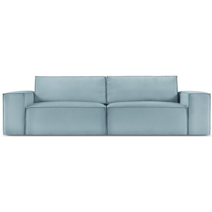 The elegant Carlo 4-seater sofa by the manufacturer Milo Casais a piece of furniture that measures: 246 cm wide, 90 cm high, 102 cm deep, which is characterised by its extreme comfort. This fashionable sofa is available in 8 colours: Beige, Light Blue, Dark Blue, Grey, Light Grey, Yellow, Black and Bottle Green, so it will suit any type of interior. The seat filling is made from a combination of corrugated spring and high elasticity polyurethane foam, and the backrest is filled with silicone. A distinctive feature of the sofa is its standard dimensions, which contribute to the high comfort of use. The sofa has been upholstered with a matte corduroy fabric, which is resistant to abrasion and pleasant to the touch. The high-quality materials used in the production of the furniture make the Carlo four-seater sofa characterised by high strength and durability. The furniture is set on low, plastic legs.