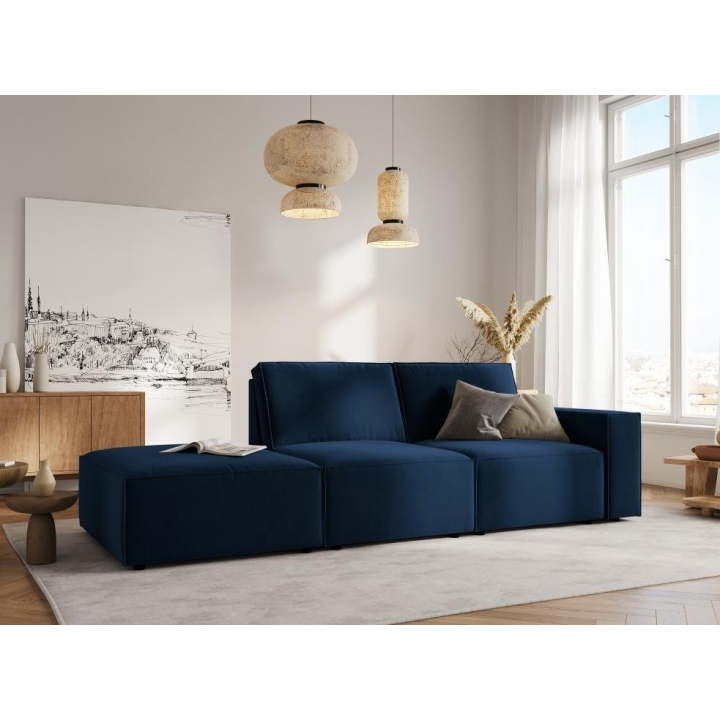 The Carlo 3-seater sofa from the Milo Casa manufacturer is a piece of furniture with dimensions: 255 cm wide, 90 cm high, 102 cm deep, which is characterised by its extreme comfort. This fashionable sofa is available in 7 colours: Light Beige, Royal Blue, Grey, Light Grey, Yellow, Black and Bottle Green, so it will suit any type of interior. The seat filling is made from a combination of corrugated spring and high elasticity polyurethane foam, while the backrest is filled with foam granules and silicone. A distinctive feature of the sofa is its fashionable shape, which contributes to its spaciousness. The sofa is upholstered with velvet softly shining fabric, which is pleasant to the touch and resistant to abrasion. The high-quality materials used in the production of the furniture make the Carlo three-seater sofa characterised by high strength and durability. The furniture is set on low, plastic legs.