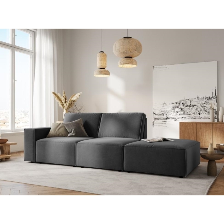The Carlo 3-seater sofa from the Milo Casa manufacturer is a piece of furniture with dimensions: 255 cm wide, 90 cm high, 102 cm deep, which is characterised by its extreme comfort. This fashionable sofa is available in 7 colours: Light Beige, Royal Blue, Grey, Light Grey, Yellow, Black and Bottle Green, so it will suit any type of interior. The seat filling is made from a combination of corrugated spring and high elasticity polyurethane foam, while the backrest is filled with foam granules and silicone. A distinctive feature of the sofa is its fashionable shape, which contributes to its spaciousness. The sofa is upholstered with velvet softly shining fabric, which is pleasant to the touch and resistant to abrasion. The high-quality materials used in the production of the furniture make the Carlo three-seater sofa characterised by high strength and durability. The furniture is set on low, plastic legs.