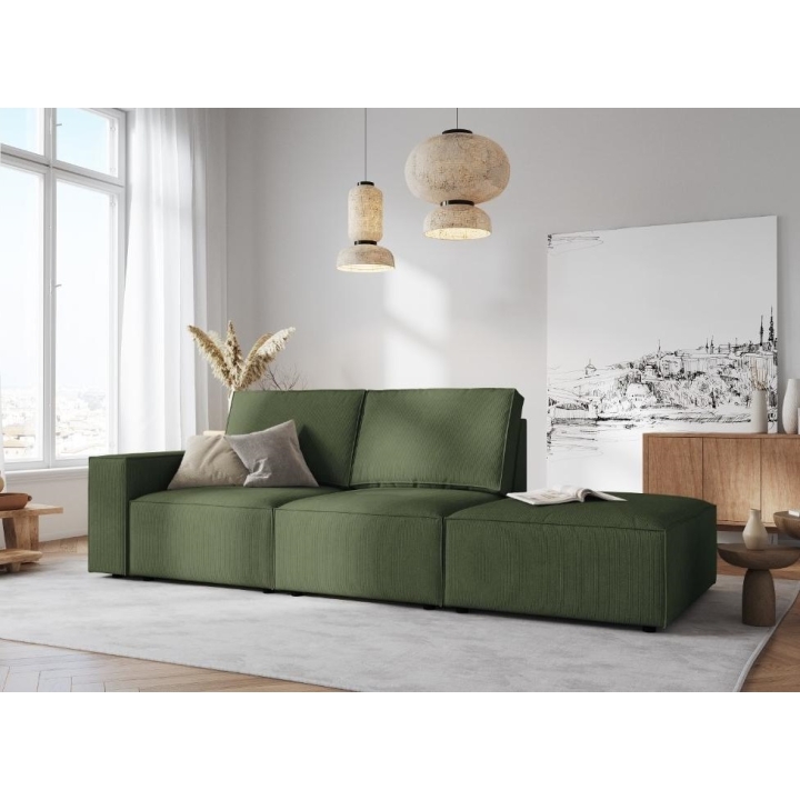 The Carlo 3-seater sofa from the Milo Casa manufacturer is a piece of furniture with dimensions: 255 cm wide, 90 cm high, 102 cm deep, which is characterised by its extreme comfort. This trendy sofa is available in 8 colours: Beige, Light Blue, Dark Blue, Grey, Light Grey, Yellow, Black and Bottle Green, so it will suit any type of interior. The seat filling is made from a combination of corrugated spring and high elasticity polyurethane foam, while the backrest is filled with foam granules and silicone. A distinctive feature of the sofa is its fashionable shape, which contributes to its high level of elegance. The sofa has been upholstered in a corduroy matt fabric that is pleasant to the touch and resistant to abrasion. The high-quality materials used in the production of the furniture make the Carlo three-seater sofa characterised by high strength and durability. The furniture is set on low, plastic legs.