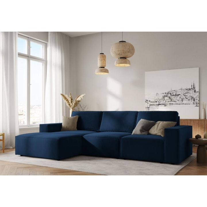 The Carlo 4-seater corner sofa from the manufacturer Milo Casa is a piece of furniture that measures: 289 cm wide, 90 cm high, 166 cm deep, which is characterised by its extreme comfort. This trendy corner sofa is available in 7 colours: Light Beige, Royal Blue, Grey, Light Grey, Yellow, Black and Bottle Green, so it will suit any type of interior. The seat filling is made from a combination of corrugated spring and high elasticity polyurethane foam, while the backrest is filled with silicone. The furniture was upholstered with velvet softly shining fabric, nice and pleasant to the touch, which ensures the highest comfort of relaxation and is additionally resistant to abrasion. The high-quality materials used in the production of the furniture make the Carlo corner sofa characterised by high strength and durability. The furniture is set on low, plastic legs. The sofa can be manufactured on the left or on the right, so you can better adapt the furniture to your home.