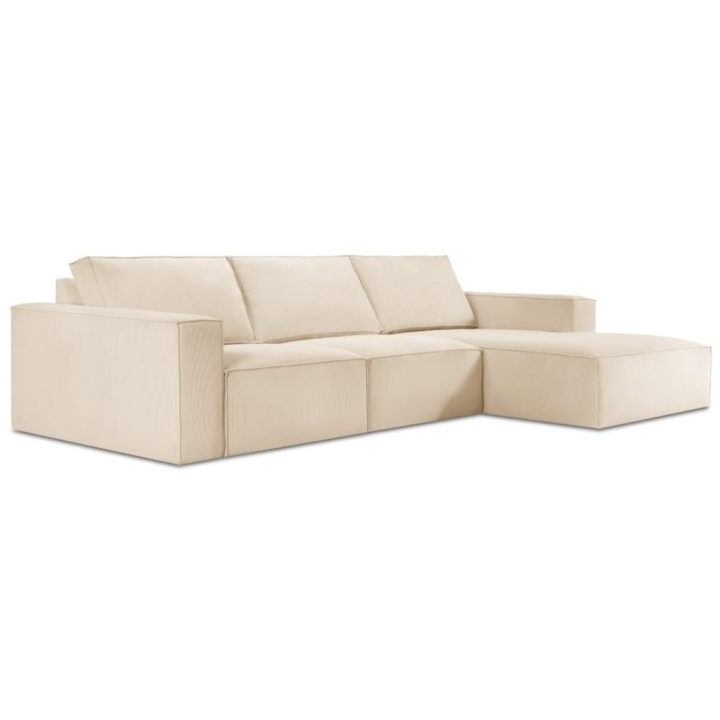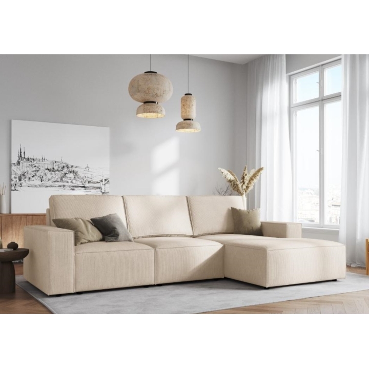 The Carlo 4-seater corner sofa from the manufacturer Milo Casa is a piece of furniture that measures: 289 cm wide, 90 cm high, 166 cm deep, which is characterised by its extreme comfort. This trendy corner sofa is available in 8 colours: Beige, Light Blue, Dark Blue, Grey, Light Grey, Yellow, Black and Bottle Green, so it will suit any type of interior. The seat filling is made from a combination of corrugated spring and high elasticity polyurethane foam, while the backrest is filled with silicone. The piece of furniture was upholstered with corduroy matt fabric, which ensures the highest comfort of relaxation and is additionally pleasant to the touch. The high quality materials used in the production of the furniture make the Carlo corner sofa characterised by high strength and durability. The furniture is set on low, plastic legs. The sofa can be manufactured on the left or on the right, so you can better adapt the furniture to your home.