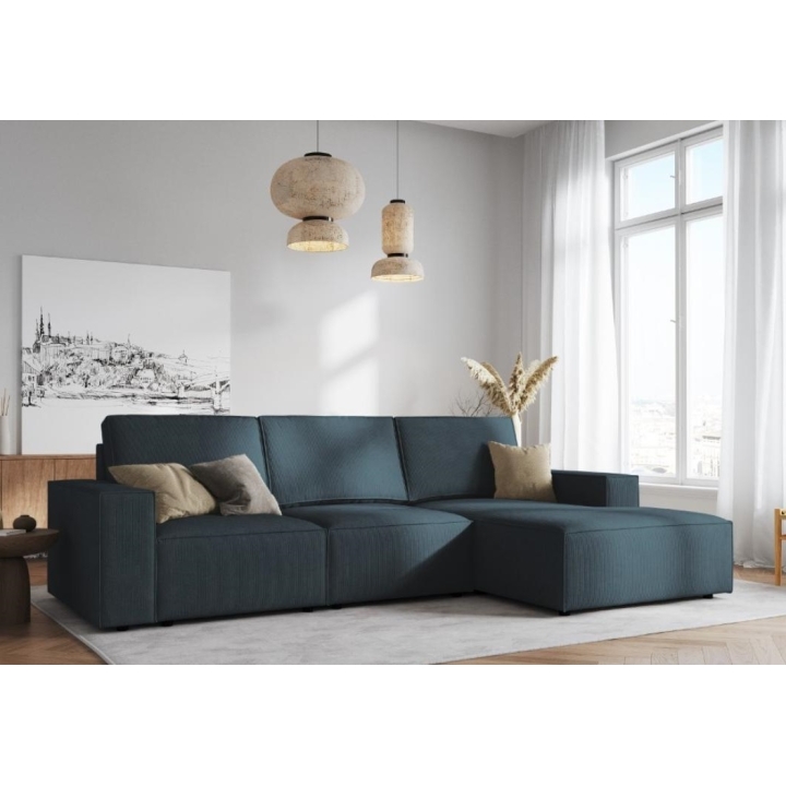 The Carlo 4-seater corner sofa from the manufacturer Milo Casa is a piece of furniture that measures: 289 cm wide, 90 cm high, 166 cm deep, which is characterised by its extreme comfort. This trendy corner sofa is available in 8 colours: Beige, Light Blue, Dark Blue, Grey, Light Grey, Yellow, Black and Bottle Green, so it will suit any type of interior. The seat filling is made from a combination of corrugated spring and high elasticity polyurethane foam, while the backrest is filled with silicone. The piece of furniture was upholstered with corduroy matt fabric, which ensures the highest comfort of relaxation and is additionally pleasant to the touch. The high quality materials used in the production of the furniture make the Carlo corner sofa characterised by high strength and durability. The furniture is set on low, plastic legs. The sofa can be manufactured on the left or on the right, so you can better adapt the furniture to your home.