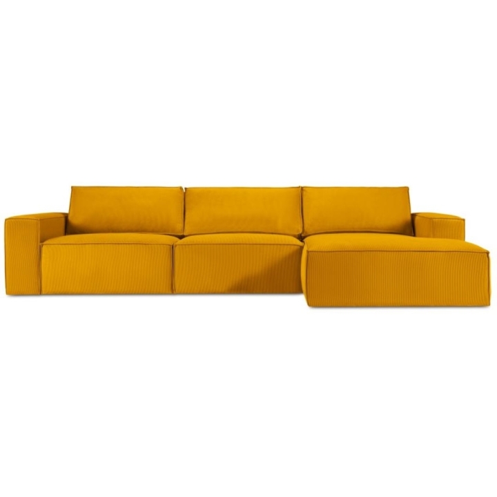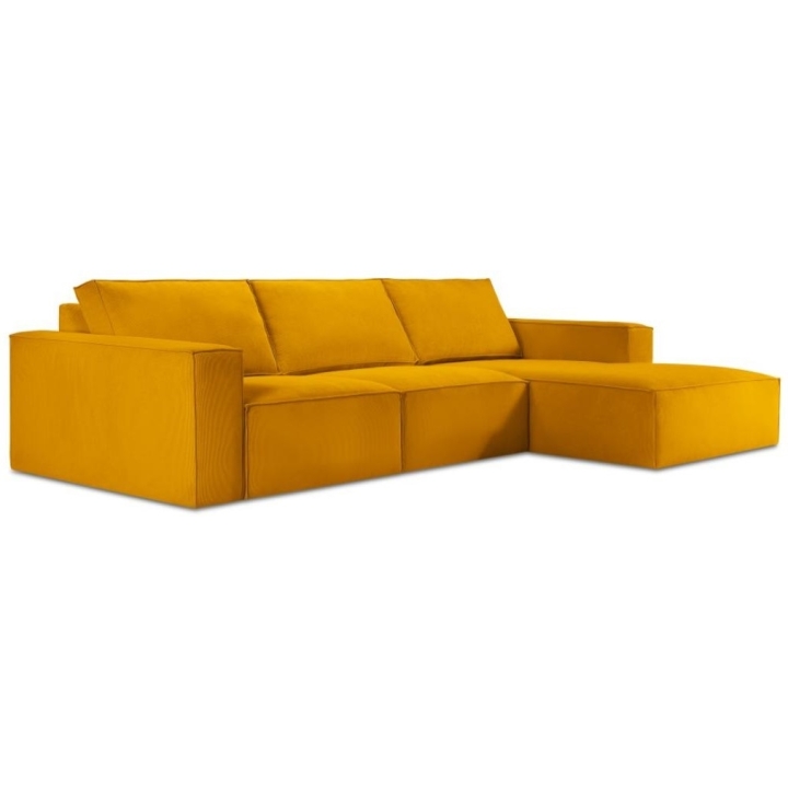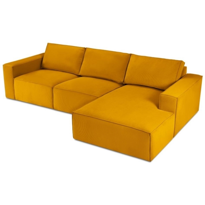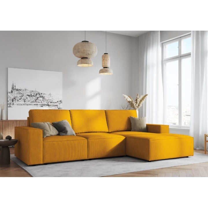 The Carlo 4-seater corner sofa from the manufacturer Milo Casa is a piece of furniture that measures: 289 cm wide, 90 cm high, 166 cm deep, which is characterised by its extreme comfort. This trendy corner sofa is available in 8 colours: Beige, Light Blue, Dark Blue, Grey, Light Grey, Yellow, Black and Bottle Green, so it will suit any type of interior. The seat filling is made from a combination of corrugated spring and high elasticity polyurethane foam, while the backrest is filled with silicone. The piece of furniture was upholstered with corduroy matt fabric, which ensures the highest comfort of relaxation and is additionally pleasant to the touch. The high quality materials used in the production of the furniture make the Carlo corner sofa characterised by high strength and durability. The furniture is set on low, plastic legs. The sofa can be manufactured on the left or on the right, so you can better adapt the furniture to your home.