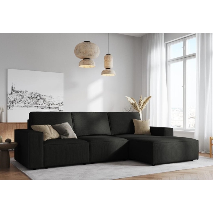 The Carlo 4-seater corner sofa from the manufacturer Milo Casa is a piece of furniture that measures: 289 cm wide, 90 cm high, 166 cm deep, which is characterised by its extreme comfort. This trendy corner sofa is available in 8 colours: Beige, Light Blue, Dark Blue, Grey, Light Grey, Yellow, Black and Bottle Green, so it will suit any type of interior. The seat filling is made from a combination of corrugated spring and high elasticity polyurethane foam, while the backrest is filled with silicone. The piece of furniture was upholstered with corduroy matt fabric, which ensures the highest comfort of relaxation and is additionally pleasant to the touch. The high quality materials used in the production of the furniture make the Carlo corner sofa characterised by high strength and durability. The furniture is set on low, plastic legs. The sofa can be manufactured on the left or on the right, so you can better adapt the furniture to your home.