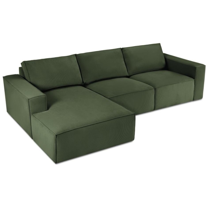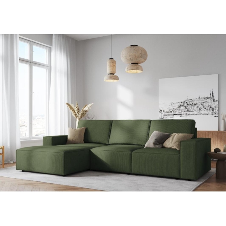 The Carlo 4-seater corner sofa from the manufacturer Milo Casa is a piece of furniture that measures: 289 cm wide, 90 cm high, 166 cm deep, which is characterised by its extreme comfort. This trendy corner sofa is available in 8 colours: Beige, Light Blue, Dark Blue, Grey, Light Grey, Yellow, Black and Bottle Green, so it will suit any type of interior. The seat filling is made from a combination of corrugated spring and high elasticity polyurethane foam, while the backrest is filled with silicone. The piece of furniture was upholstered with corduroy matt fabric, which ensures the highest comfort of relaxation and is additionally pleasant to the touch. The high quality materials used in the production of the furniture make the Carlo corner sofa characterised by high strength and durability. The furniture is set on low, plastic legs. The sofa can be manufactured on the left or on the right, so you can better adapt the furniture to your home.