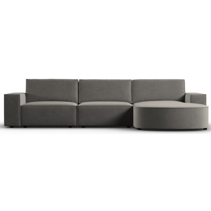 The exceptional Carlo rounded 4-seater corner sofa from the manufacturer Milo Casa is a piece of furniture that measures: 289 cm wide, 90 cm high, 166 cm deep, which is characterised by its extreme comfort. This trendy corner sofa is available in colours: Light Beige, Royal Blue, Grey, Light Grey, Yellow, Black and Bottle Green, so it will suit any type of interior. The seat filling is made from a combination of corrugated spring and high elasticity polyurethane foam, and the backrest is filled with silicone. A distinguishing feature of the corner sofa is undoubtedly its rounded backrest, which adds elegance and chic to the piece. The piece of furniture is upholstered with velvet, delicately glossy fabric, nice and pleasant to the touch, which ensures the highest comfort of rest, and is additionally resistant to abrasion. The high quality materials used in the production of the furniture make the Carlo corner sofa characterised by high strength and durability. The furniture is set on low, plastic legs. The sofa can be manufactured on the left or on the right, so you can better adapt the furniture to your home.