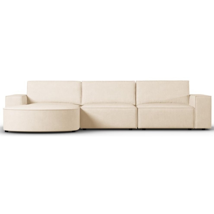 The exceptional Carlo rounded 4-seater corner sofa from the manufacturer Milo Casa is a piece of furniture that measures: 289 cm wide, 90 cm high, 166 cm deep, which is characterised by its extreme comfort. This trendy corner sofa is available in 8 colours: Beige, Light Blue, Dark Blue, Grey, Light Grey, Yellow, Black and Bottle Green, so it will suit any type of interior. The seat filling is made from a combination of corrugated spring and high elasticity polyurethane foam, while the backrest is filled with silicone. A distinguishing feature of the corner sofa is undoubtedly its rounded backrest, which adds elegance and chic to the piece. The piece of furniture is upholstered with corduroy matt fabric, which ensures the highest comfort and is also pleasant to the touch. The high-quality materials used in the production of the furniture make the Carlo corner sofa strong and durable. The furniture is set on low, plastic legs. The sofa can be manufactured on the left or on the right, so you can better adapt the furniture to your home.