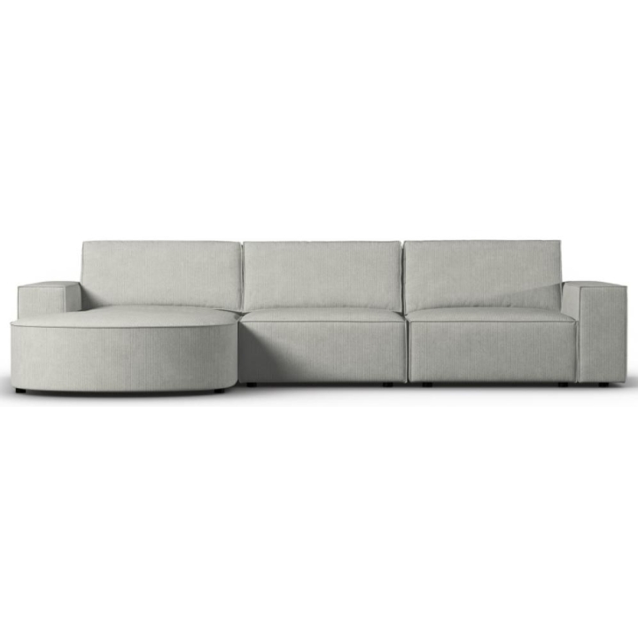 The exceptional Carlo rounded 4-seater corner sofa from the manufacturer Milo Casa is a piece of furniture that measures: 289 cm wide, 90 cm high, 166 cm deep, which is characterised by its extreme comfort. This trendy corner sofa is available in 8 colours: Beige, Light Blue, Dark Blue, Grey, Light Grey, Yellow, Black and Bottle Green, so it will suit any type of interior. The seat filling is made from a combination of corrugated spring and high elasticity polyurethane foam, while the backrest is filled with silicone. A distinguishing feature of the corner sofa is undoubtedly its rounded backrest, which adds elegance and chic to the piece. The piece of furniture is upholstered with corduroy matt fabric, which ensures the highest comfort and is also pleasant to the touch. The high-quality materials used in the production of the furniture make the Carlo corner sofa strong and durable. The furniture is set on low, plastic legs. The sofa can be manufactured on the left or on the right, so you can better adapt the furniture to your home.