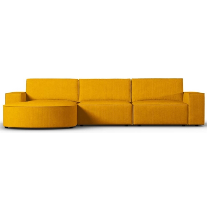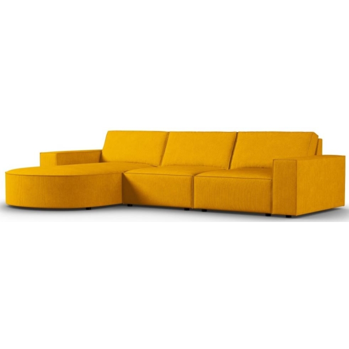 The exceptional Carlo rounded 4-seater corner sofa from the manufacturer Milo Casa is a piece of furniture that measures: 289 cm wide, 90 cm high, 166 cm deep, which is characterised by its extreme comfort. This trendy corner sofa is available in 8 colours: Beige, Light Blue, Dark Blue, Grey, Light Grey, Yellow, Black and Bottle Green, so it will suit any type of interior. The seat filling is made from a combination of corrugated spring and high elasticity polyurethane foam, while the backrest is filled with silicone. A distinguishing feature of the corner sofa is undoubtedly its rounded backrest, which adds elegance and chic to the piece. The piece of furniture is upholstered with corduroy matt fabric, which ensures the highest comfort and is also pleasant to the touch. The high-quality materials used in the production of the furniture make the Carlo corner sofa strong and durable. The furniture is set on low, plastic legs. The sofa can be manufactured on the left or on the right, so you can better adapt the furniture to your home.