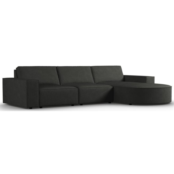 The exceptional Carlo rounded 4-seater corner sofa from the manufacturer Milo Casa is a piece of furniture that measures: 289 cm wide, 90 cm high, 166 cm deep, which is characterised by its extreme comfort. This trendy corner sofa is available in 8 colours: Beige, Light Blue, Dark Blue, Grey, Light Grey, Yellow, Black and Bottle Green, so it will suit any type of interior. The seat filling is made from a combination of corrugated spring and high elasticity polyurethane foam, while the backrest is filled with silicone. A distinguishing feature of the corner sofa is undoubtedly its rounded backrest, which adds elegance and chic to the piece. The piece of furniture is upholstered with corduroy matt fabric, which ensures the highest comfort and is also pleasant to the touch. The high-quality materials used in the production of the furniture make the Carlo corner sofa strong and durable. The furniture is set on low, plastic legs. The sofa can be manufactured on the left or on the right, so you can better adapt the furniture to your home.