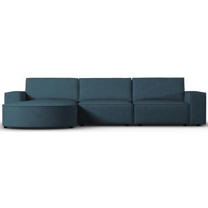 The exceptional Carlo rounded 4-seater corner sofa from the manufacturer Milo Casa is a piece of furniture that measures: 289 cm wide, 90 cm high, 166 cm deep, which is characterised by its extreme comfort. This trendy corner sofa is available in 8 colours: Beige, Light Blue, Dark Blue, Grey, Light Grey, Yellow, Black and Bottle Green, so it will suit any type of interior. The seat filling is made from a combination of corrugated spring and high elasticity polyurethane foam, while the backrest is filled with silicone. A distinguishing feature of the corner sofa is undoubtedly its rounded backrest, which adds elegance and chic to the piece. The piece of furniture is upholstered with corduroy matt fabric, which ensures the highest comfort and is also pleasant to the touch. The high-quality materials used in the production of the furniture make the Carlo corner sofa strong and durable. The furniture is set on low, plastic legs. The sofa can be manufactured on the left or on the right, so you can better adapt the furniture to your home.