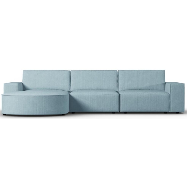 The exceptional Carlo rounded 4-seater corner sofa from the manufacturer Milo Casa is a piece of furniture that measures: 289 cm wide, 90 cm high, 166 cm deep, which is characterised by its extreme comfort. This trendy corner sofa is available in 8 colours: Beige, Light Blue, Dark Blue, Grey, Light Grey, Yellow, Black and Bottle Green, so it will suit any type of interior. The seat filling is made from a combination of corrugated spring and high elasticity polyurethane foam, while the backrest is filled with silicone. A distinguishing feature of the corner sofa is undoubtedly its rounded backrest, which adds elegance and chic to the piece. The piece of furniture is upholstered with corduroy matt fabric, which ensures the highest comfort and is also pleasant to the touch. The high-quality materials used in the production of the furniture make the Carlo corner sofa strong and durable. The furniture is set on low, plastic legs. The sofa can be manufactured on the left or on the right, so you can better adapt the furniture to your home.
