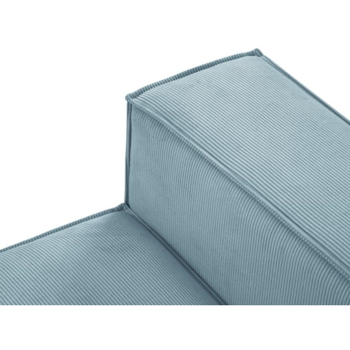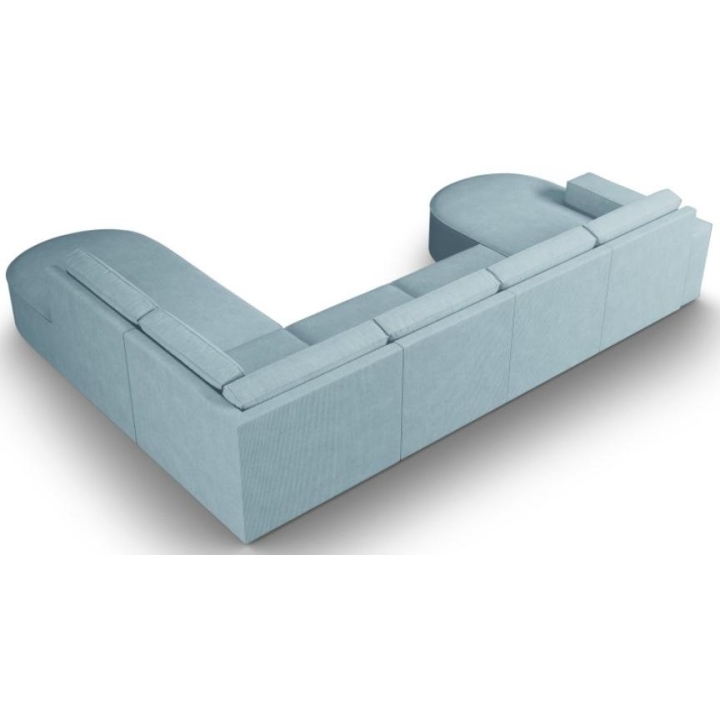 The modern Carlo panoramic 5-seater rounded corner sofa by Milo Casa is a piece of furniture with dimensions: 368 cm wide, 90 cm high, 262 cm deep on one side and 160 cm on the other, which is characterised by its extreme comfort. This trendy corner sofa is available in 8 colours: Beige, Light Blue, Dark Blue, Grey, Light Grey, Yellow, Black and Bottle Green, so it will suit any type of interior. The seat filling is made from a combination of corrugated spring and high elasticity polyurethane foam, and the backrest is filled with silicone. A distinctive feature of the sofa is its unusual, futuristic shape - the body resembles the letter 'U', making it a perfect piece of furniture for social gatherings. The sofa is upholstered with corduroy matt fabric, nice and pleasant to the touch, which ensures the highest comfort of rest. The high-quality materials used in the production of the furniture make the Carlo panoramic sofa strong and durable. The furniture is set on low, plastic legs. The longer lounger can be manufactured on the left or right side, allowing you to better adapt the furniture to your home.