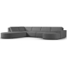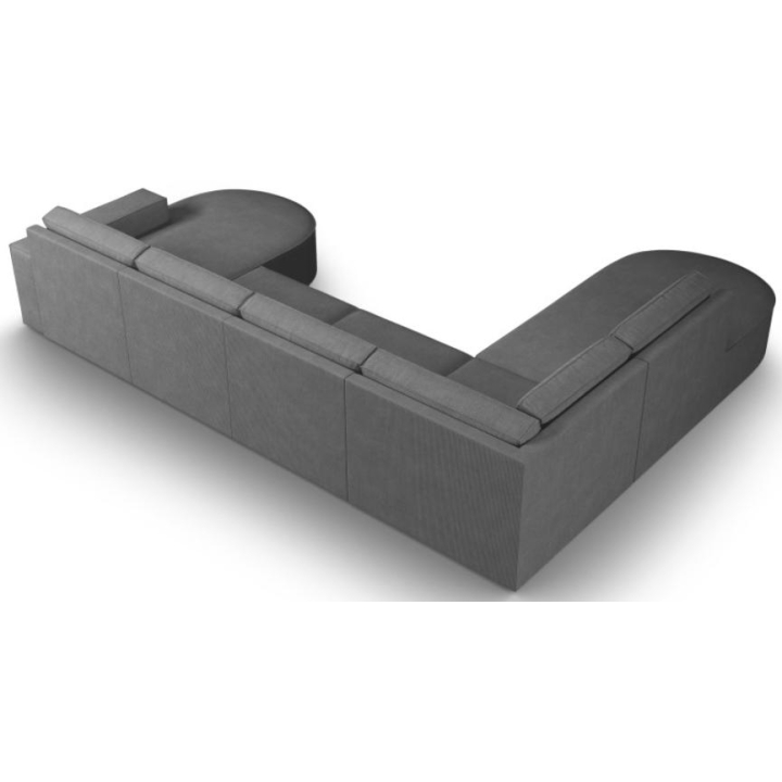 The modern Carlo panoramic 5-seater rounded corner sofa by Milo Casa is a piece of furniture with dimensions: 368 cm wide, 90 cm high, 262 cm deep on one side and 160 cm on the other, which is characterised by its extreme comfort. This trendy corner sofa is available in 8 colours: Beige, Light Blue, Dark Blue, Grey, Light Grey, Yellow, Black and Bottle Green, so it will suit any type of interior. The seat filling is made from a combination of corrugated spring and high elasticity polyurethane foam, and the backrest is filled with silicone. A distinctive feature of the sofa is its unusual, futuristic shape - the body resembles the letter 'U', making it a perfect piece of furniture for social gatherings. The sofa is upholstered with corduroy matt fabric, nice and pleasant to the touch, which ensures the highest comfort of rest. The high-quality materials used in the production of the furniture make the Carlo panoramic sofa strong and durable. The furniture is set on low, plastic legs. The longer lounger can be manufactured on the left or right side, allowing you to better adapt the furniture to your home.