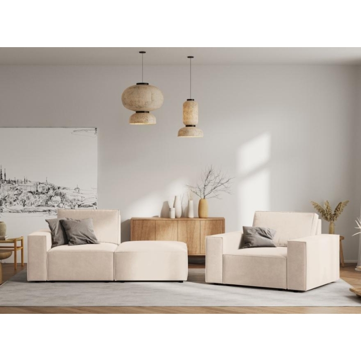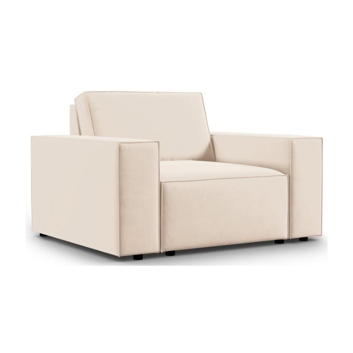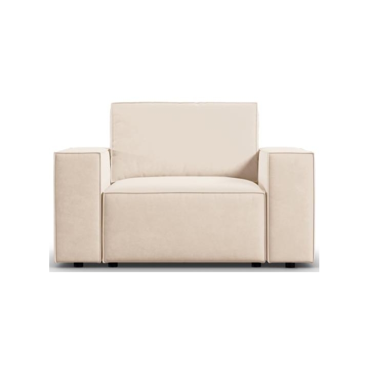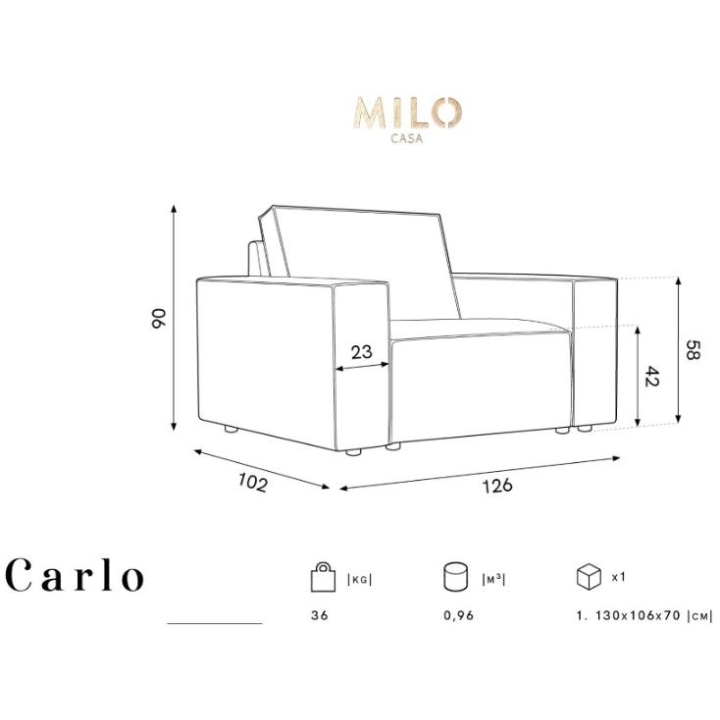 The armchair from the Carlo collection by Milo Casa is a practical choice for a stylish living room. The seat filling is made of a combination of highly elastic polyurethane foam and corrugated spring, while the backrest is made of silicone. The armchair is upholstered in velvet fabric with a soft sheen and is available in 7 colours: Light Beige, Royal Blue, Light Grey, Grey, Yellow, Black and Bottle Green. The high-quality materials that have been used in its production ensure that the user receives the ultimate in relaxation comfort. The furniture measures: 102 cm deep, 90 cm high and 126 cm wide is set on low plastic legs. The smoothly finished seat and soft armrests make the armchair very comfortable.