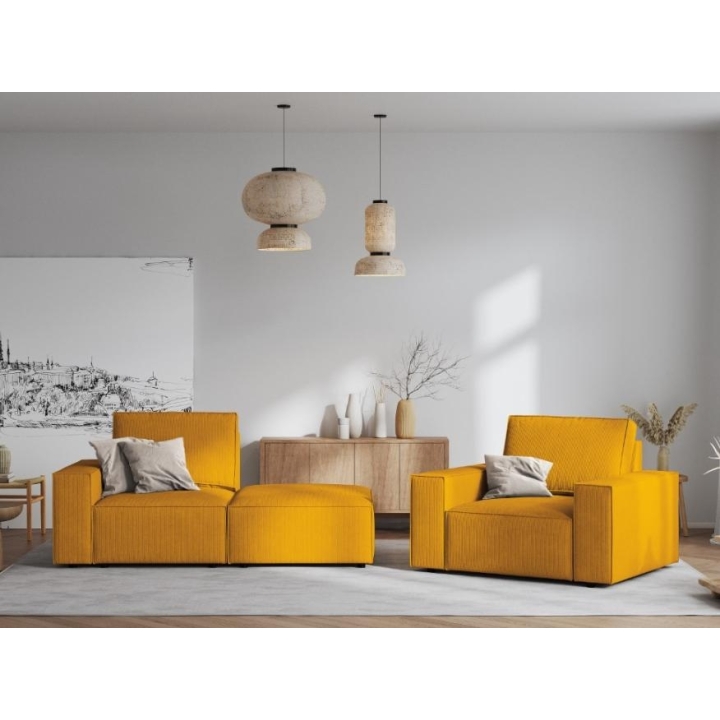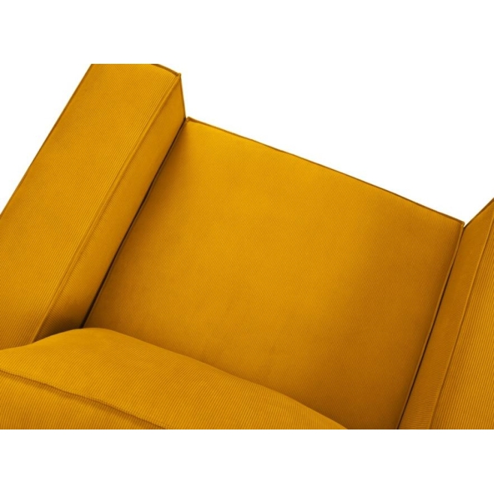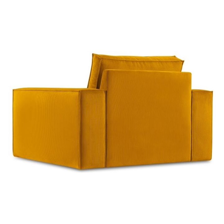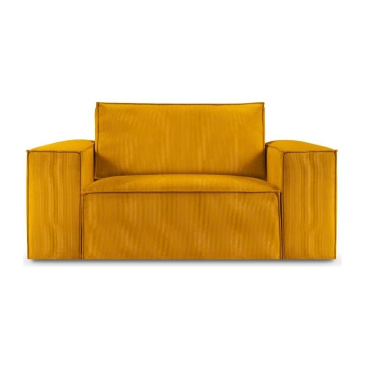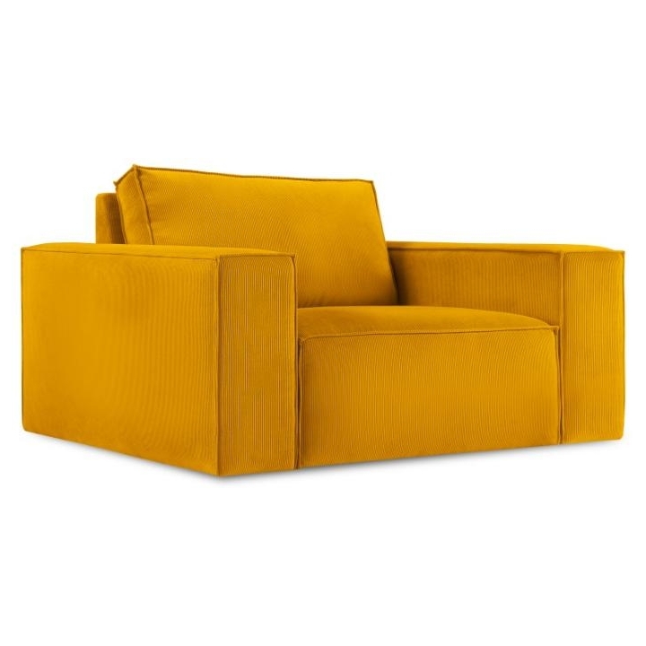 The armchair from the Carlo collection by Milo Casa is a practical choice for a stylish living room. The seat filling is made of a combination of highly elastic polyurethane foam and corrugated spring, and the backrest is made of silicone. The armchair is upholstered in a corduroy matte fabric that is pleasant to the touch and is available in 8 colours: Beige, Light Blue, Dark Blue, Grey, Light Grey, Yellow, Black and Bottle Green. The high-quality materials that have been used in its manufacture ensure that the user receives the ultimate in relaxation comfort. The furniture measures: 102 cm deep, 90 cm high and 126 cm wide is set on low plastic legs. The wide seat and soft armrests make the armchair very comfortable.