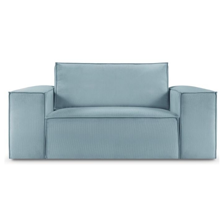 The armchair from the Carlo collection by Milo Casa is a practical choice for a stylish living room. The seat filling is made of a combination of highly elastic polyurethane foam and corrugated spring, while the backrest is made of silicone. The armchair is upholstered in a corduroy matt fabric and is available in 8 colours: Beige, Light Blue, Dark Blue, Grey, Light Grey, Yellow, Black and Bottle Green. The high-quality materials that have been used in its manufacture ensure that the user receives the ultimate in relaxation comfort. The furniture measures: 102 cm deep, 90 cm high and 146 cm wide is set on low plastic legs. The wide seat and soft armrests make the armchair very comfortable.