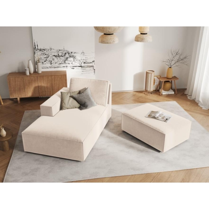 The Carlo chaise longue from the manufacturer Milo Casa is a proposal for those looking for unusual solutions for modern rooms with a unique style. This incredibly comfortable lounger with a unique design has been upholstered in velvet fabric in a soft glossy sheen, soft and pleasant to the touch, and is available in 7 colours: Light Beige, Royal Blue, Grey, Light Grey, Yellow, Black and Bottle Green. The seat is filled with corrugated spring and polyurethane foam and the back is filled with silicone. The furniture measuring 106 cm wide, 90 cm high and 166 cm deep guarantees comfort at the highest level, also thanks to the seat height of 42 cm. The shape of the unit has been selected to suit the anatomy of the human body, making it very ergonomic. The chaise longue is available in the left or right version.